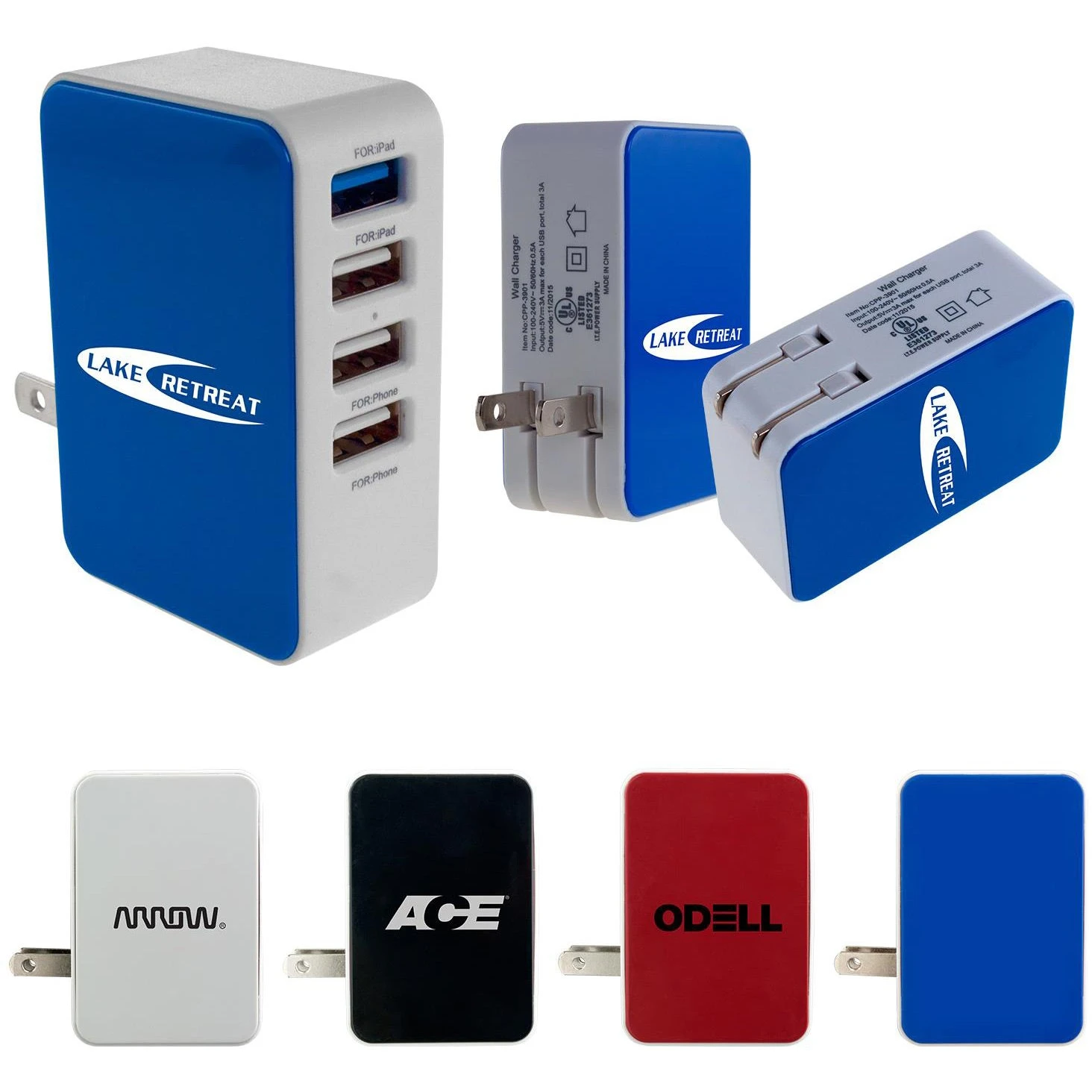 Customers love to buy our Printed 4-Port USB Folding Wall Chargers and enjoy the guaranteed lowest price on Custom Phone Chargers & Custom USB Chargers from Quality Logo Products®