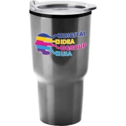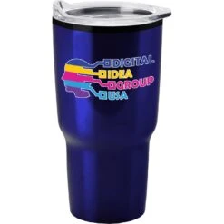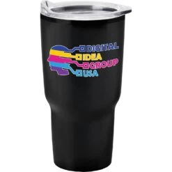 Extra-large 28 oz. Stainless steel tumbler with polypropylene liner. 30 oz. Capacity to the brim. Imprinted in full color. Double wall insulated with polypropylene liner. Keep drinks hot or cold for hours. Spill-resistant clear acrylic slide lid with gasket seal. Cost effective promo item for any event. BPA free. FDA compliant. Hand wash only. Do not microwave. Individually polybagged at no extra charge. Ships assembled.