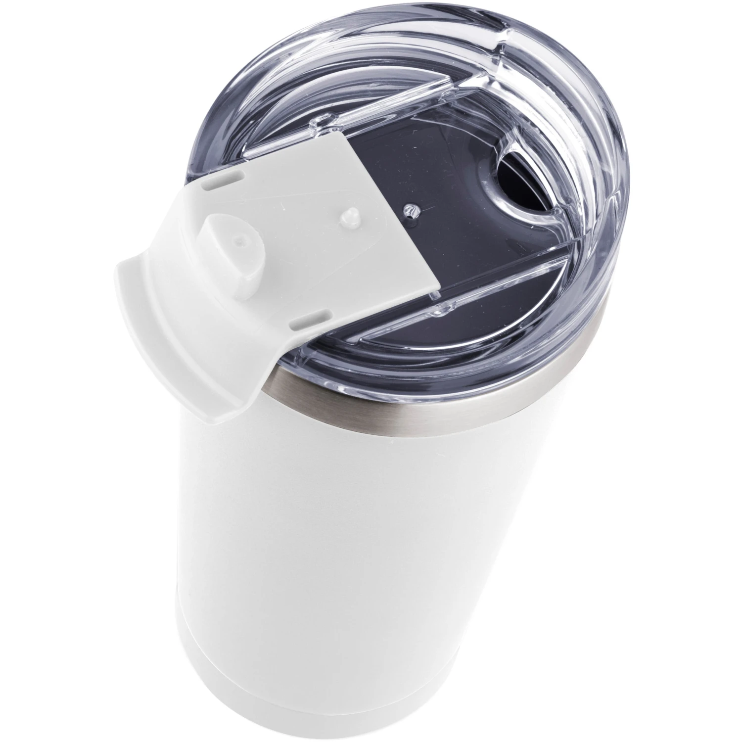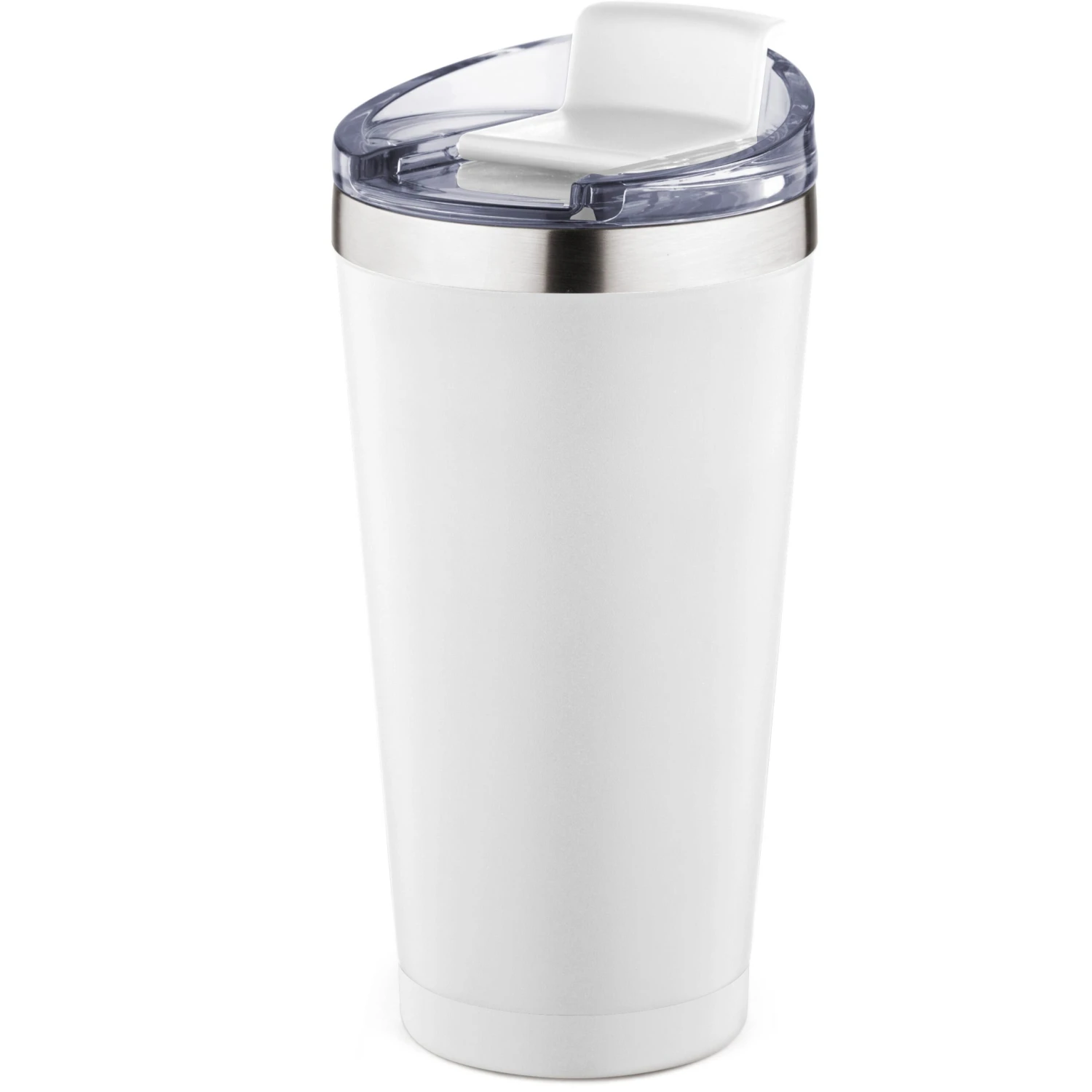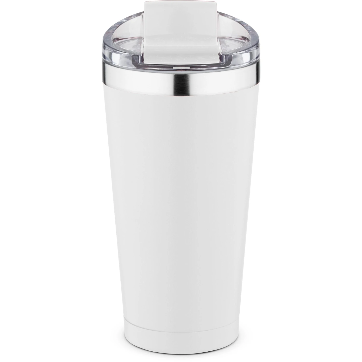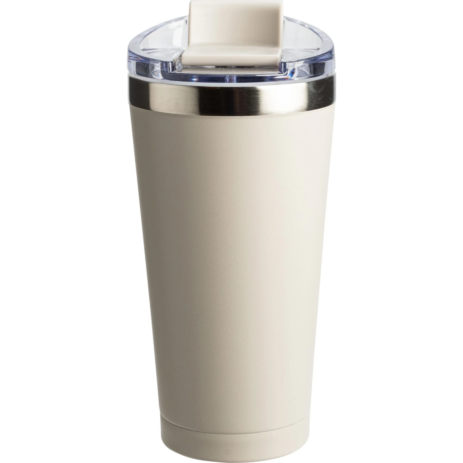 20 ounce double wall, stainless steel, vacuum insulated tumbler. Features a clear AS plastic screw-on lid with color matched PP flip top spout cover. Powder coat finish with copper lining and brushed silver accents. Keeps contents cold for 12 hours or hot for 6 hours. Fits in standard cup holders. Not microwave safe. Hand wash only.