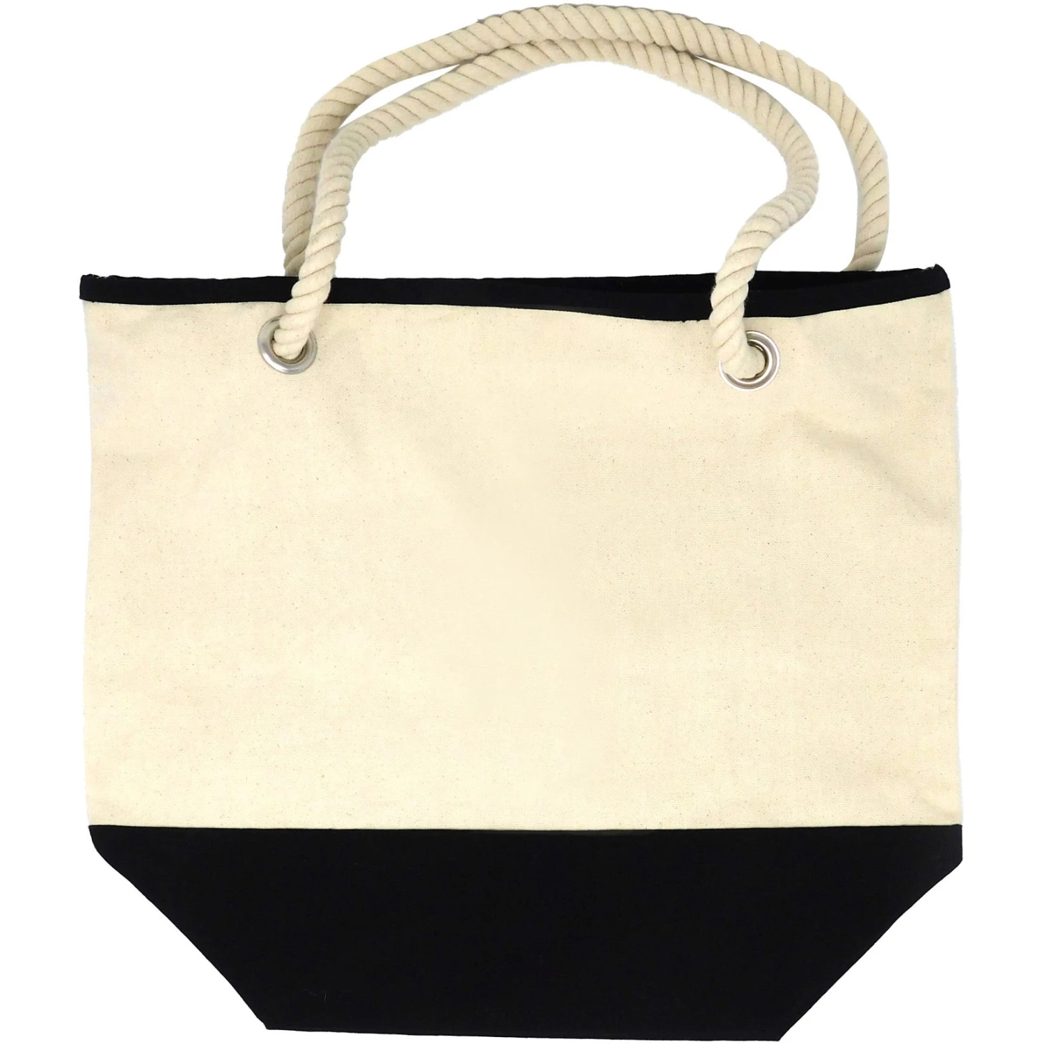 Perfect for the beach, the boat, or weekend adventures. A classic nautical look and large body make the Beach Bum tote the ultimate sunshine adventure bag. This roomy tote is perfect for taking all the essentials on everyday adventures. It features one large, open main compartment that’s accented with a sleek black top and bottom. It’s then finished off with stunning, yet sturdy, 26″ nautical-themed rope handles that are held in place with durable grommets. Can hold up to 40 pounds and can carry heavy loads.