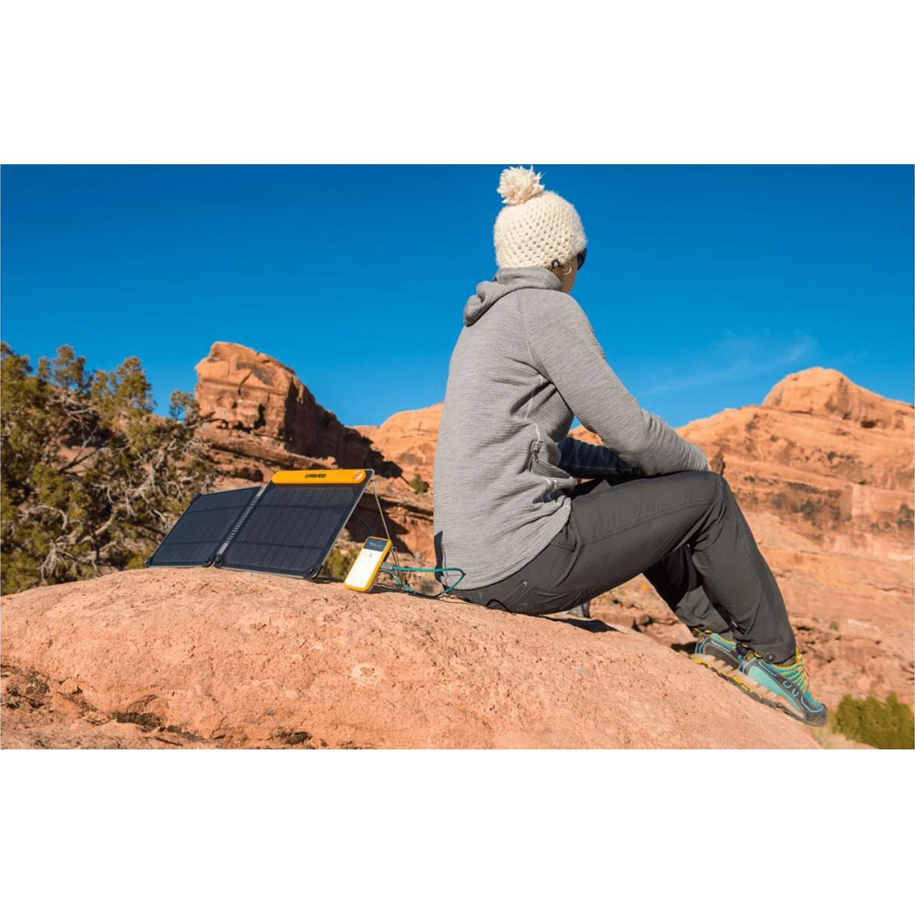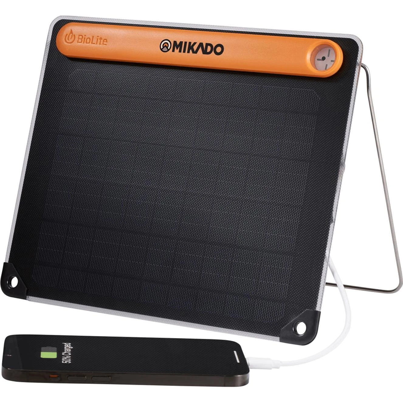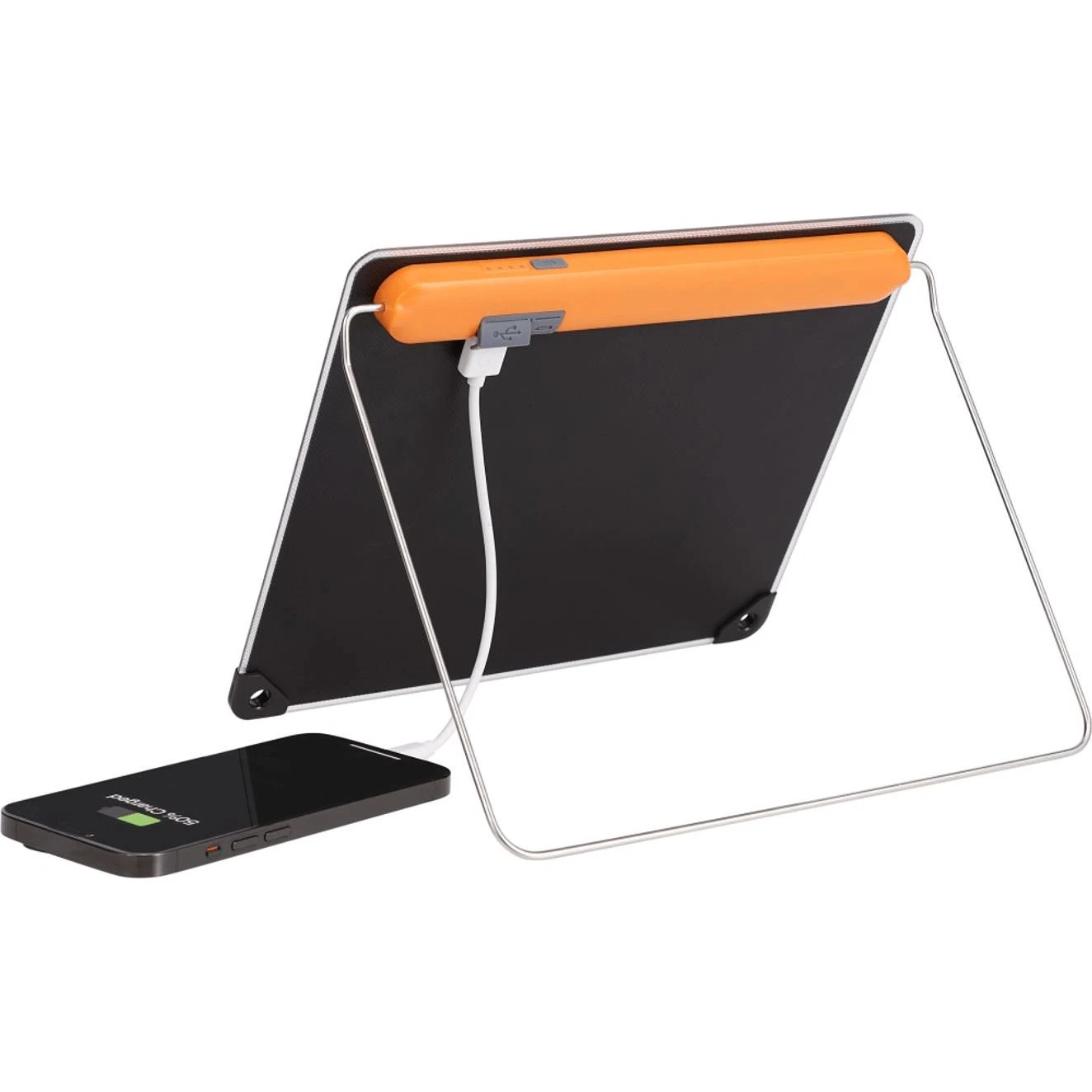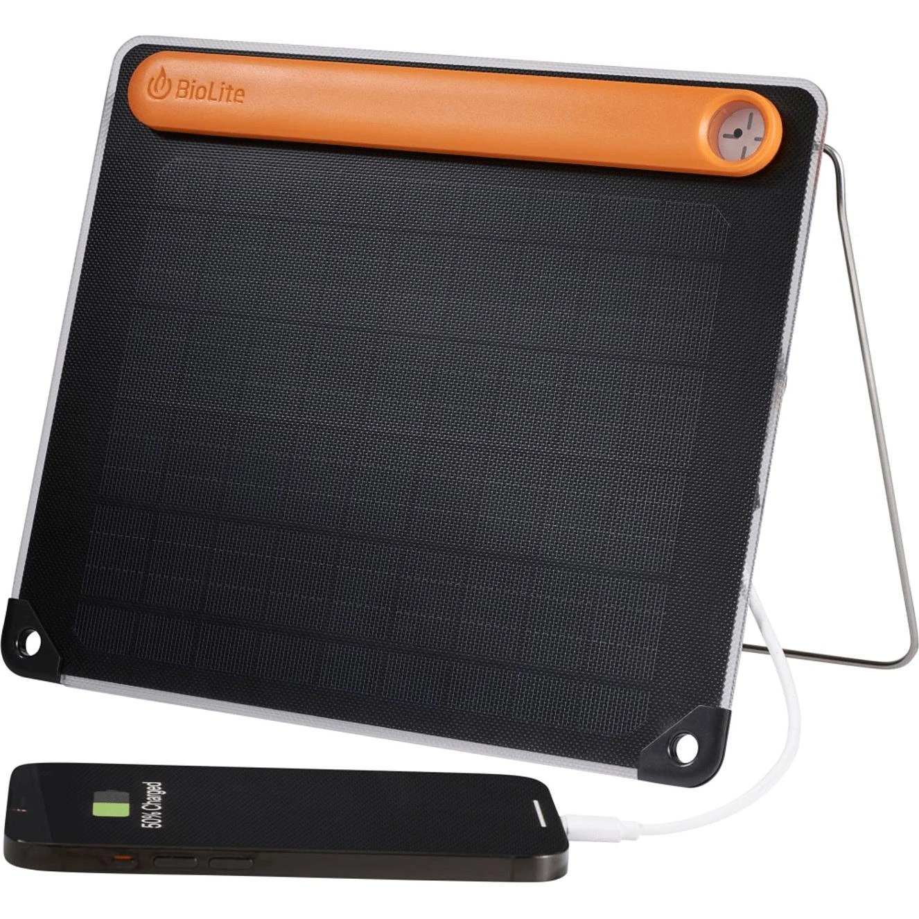 Get the most from the sun with the lightweight and portable BioLite SolarPanel 5+. Featuring BioLite’s Optimal Sun System, an integrated sundial aligns you to the sun to capture direct rays while a 360-degree kickstand simplifies positioning on uneven terrain. The 3,200mAh onboard battery stores energy for later, allowing you to charge devices when you need it most. Power phones, tablets, and BioLite gear with this ultra slim 5-Watt panel. 5 watts of usable power via USB output. 360-degree stand featuring Optimal Sun System. Integrated 3,200mAh on-board battery.
