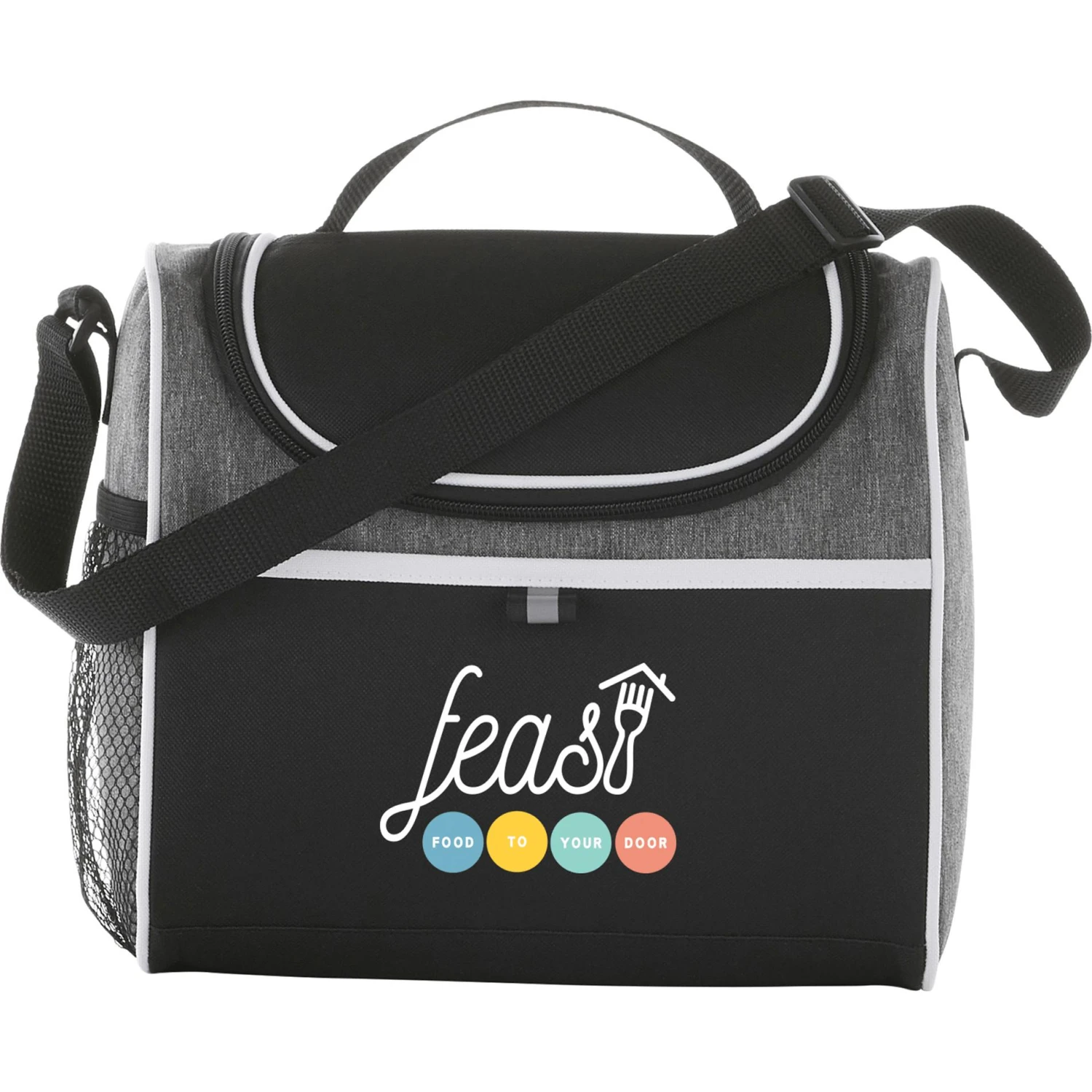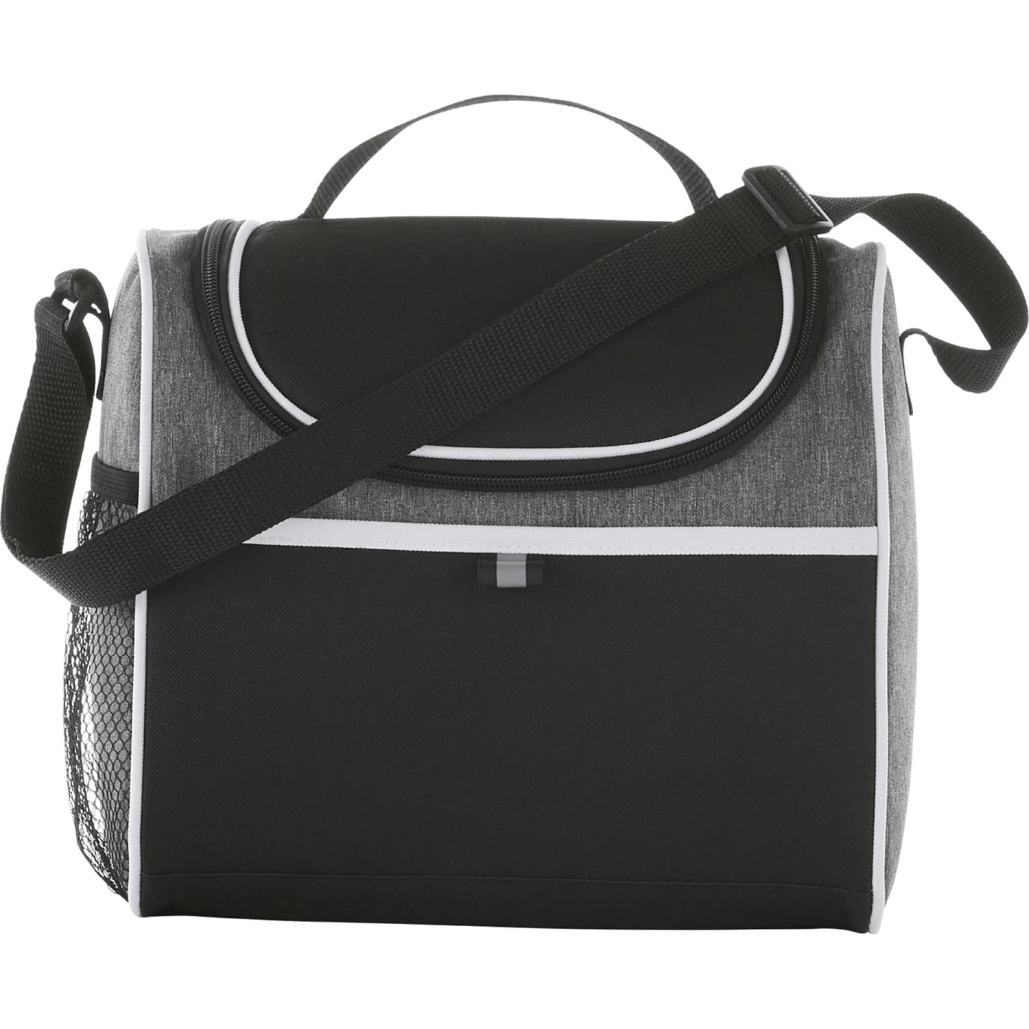 Insulated PEVA lining. Top grab handle. Side mesh pocket. Multiple decorating locations available. Two slip pockets on the front and top of cooler. Adjustable shoulder strap. Disclaimer: There may be minor variations in color of the actual product due to the nature of the fabric dyes, weaves and printing.