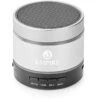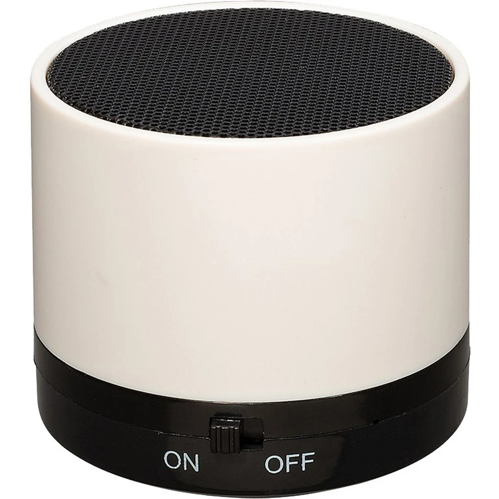 ABS plastic round wireless speaker. Device must be charged prior to first use. Charge time varies by device. Minimum charge time: 2 hours. Playback time: approximately 90 minutes depending on volume and usage. Charging cable and instructions included. FCC approved.