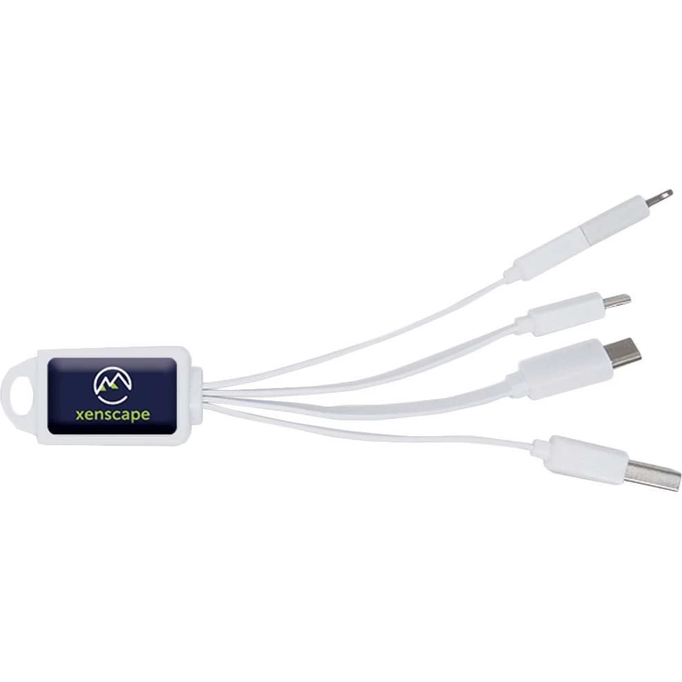 Your one-size-fits-all connector cord is ready to do your bidding. Not only does this come with an Apple-certified MFI Lightning tip, but it also includes the new USB-C tip to make connecting to any of your gadgets a breeze. With a full-color digital imprint, any logo is sure to pop. Rest easy knowing you can charge all your essential electronics without having to carry multiple cords. Standard USB cord. 2 micro-USB cords. Key chain hook.
