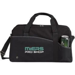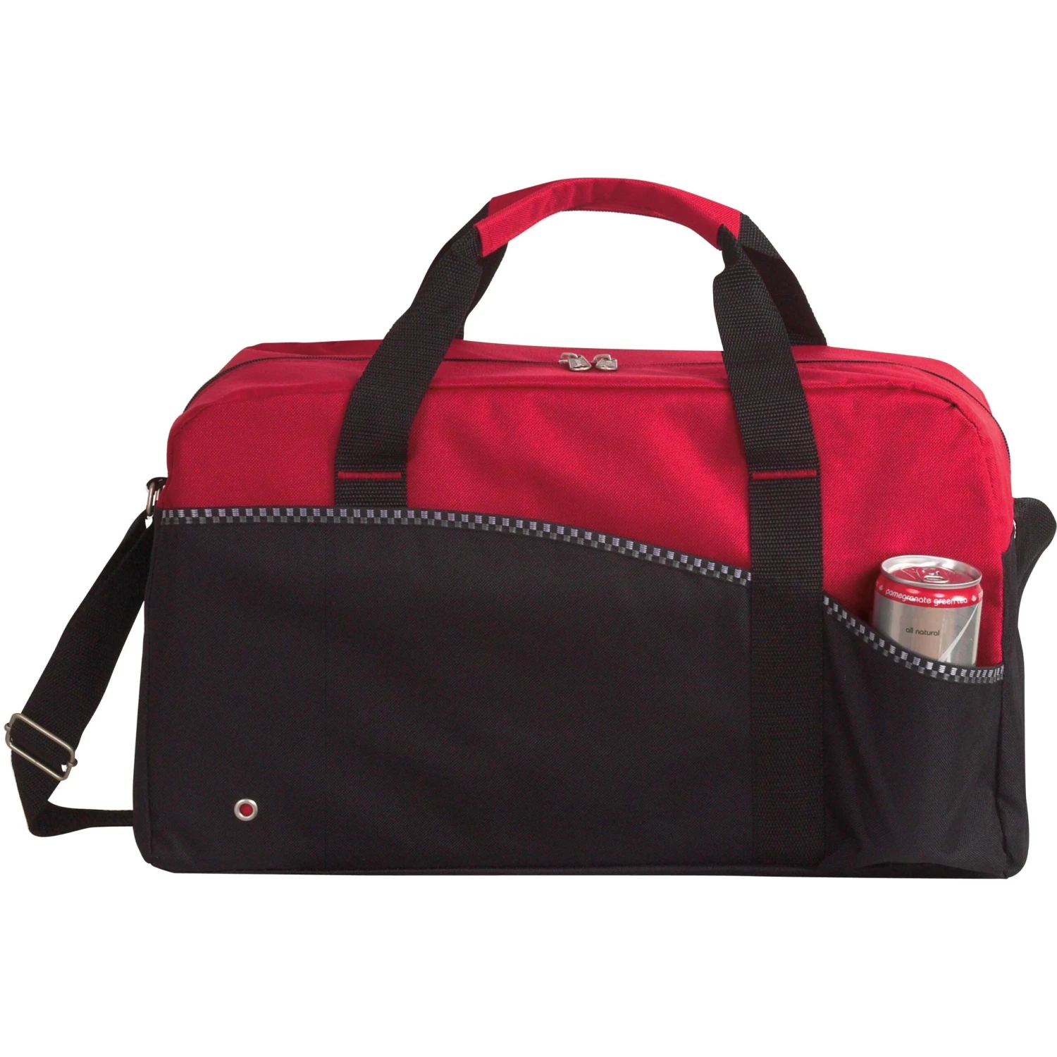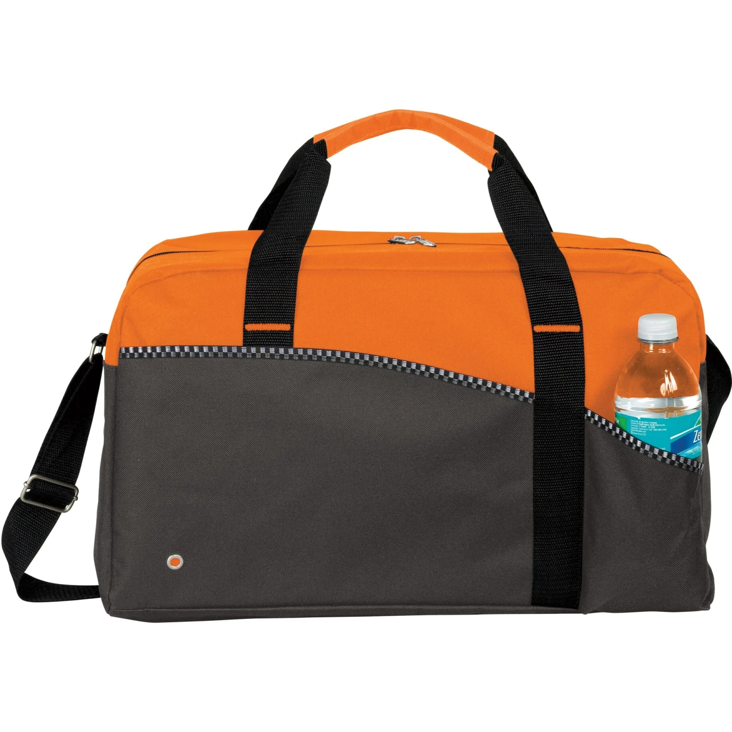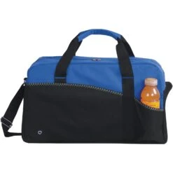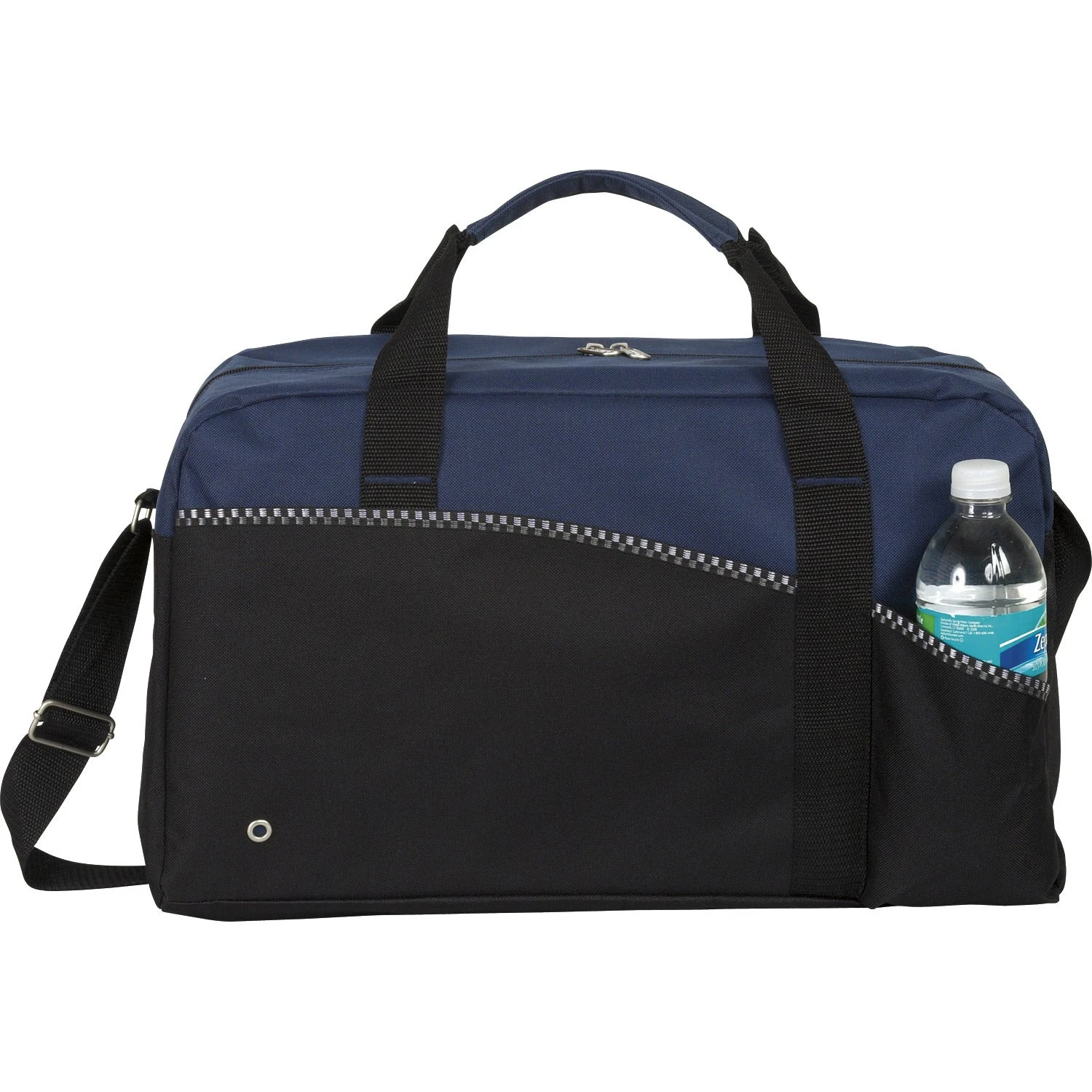 These terrific, versatile bags are great for sports as well as for travel and feature fabric wrapped handle grips, a comfortable adjustable shoulder strap, full front slip pocket, and a front water bottle pocket. In other words, our custom Center Court Duffels are just what your clients need to carry all their favorite belongings all over town!