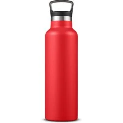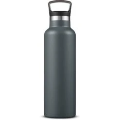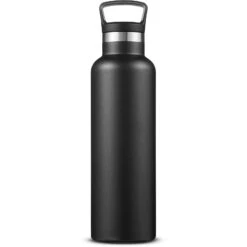21 oz. (621 mL) double wall vacuum insulated bottle with powder-coated finish. Made of durable 304 stainless steel. Features polypropylene plastic lid with hook that screws on and off for easy drinking. Designed for use with both hot and cold beverages. Keeps contents hot for up to 12 hours or cold for up to 30 hours. Wide top opening for adding ice cubes. Hand-wash only; do not microwave; do not place in freezer.