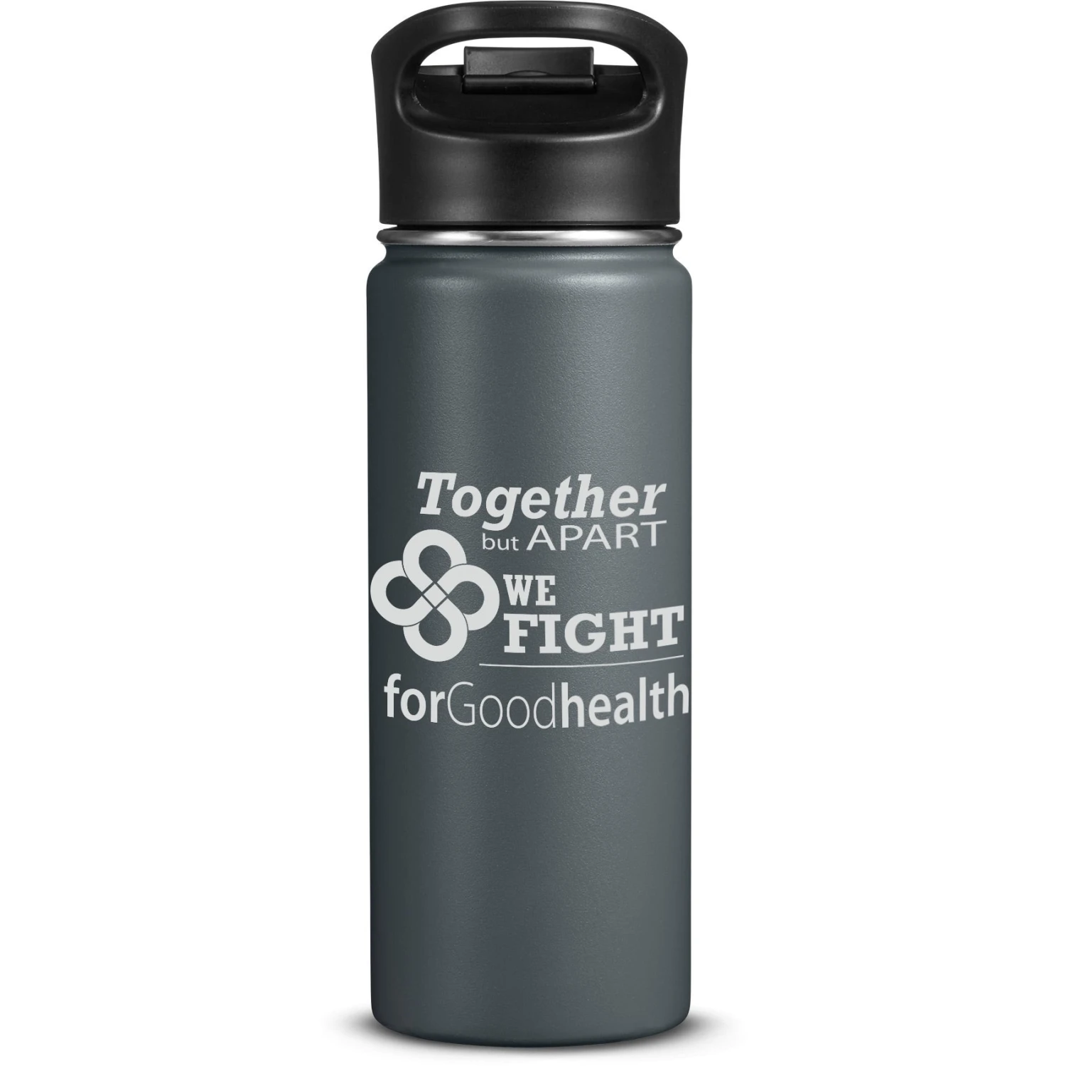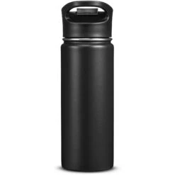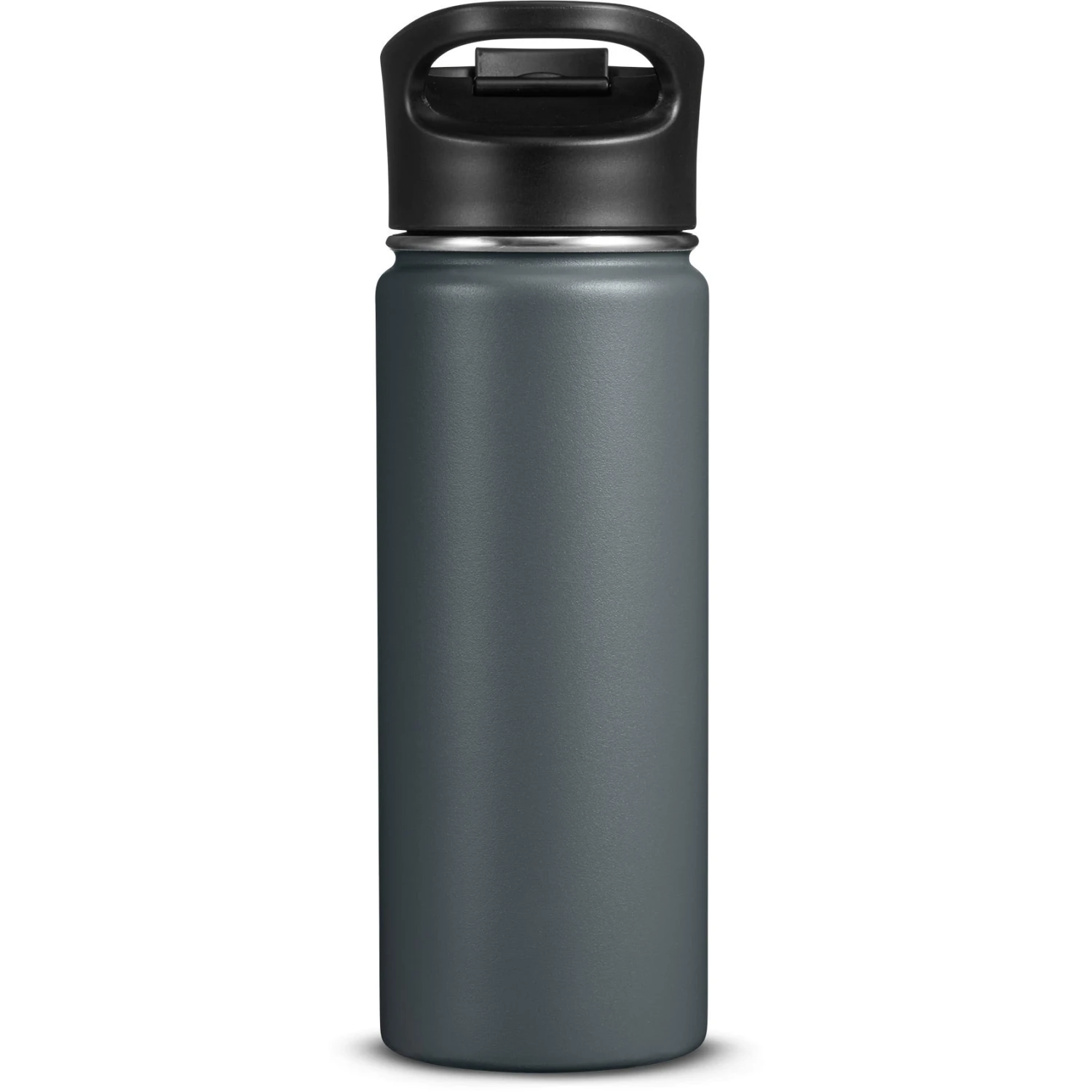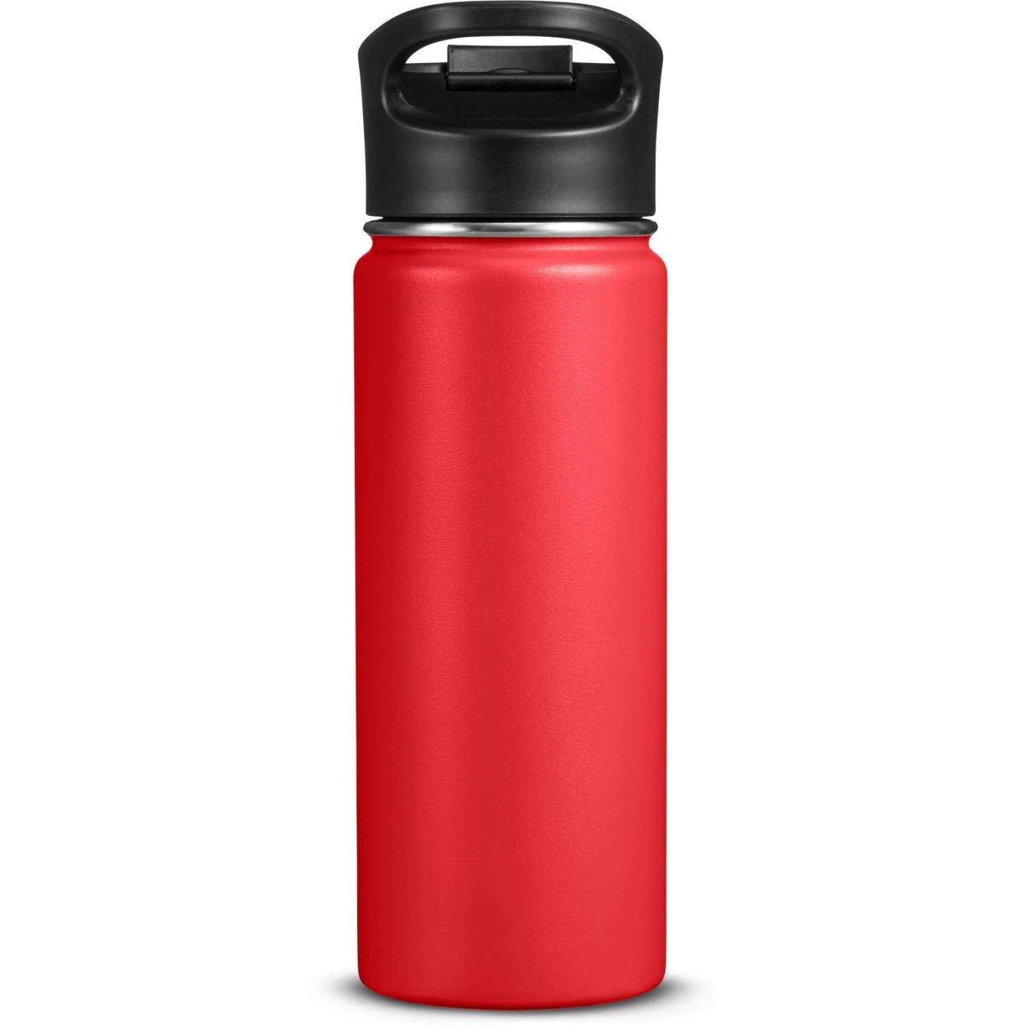 18 oz. (532 mL) double wall powder-coated Stainless Steel (304 18/8) vacuum insulated bottle with polypropylene plastic lid. Screw-on lid with pop-up tab for drinking. Designed for use with both hot and cold beverages. Keeps contents hot for up to 6 hours or cold for up to 18 hours. Hand-wash only; do not microwave; do not place in freezer.