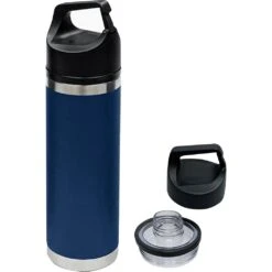 Stainless steel outer and inner. Double wall construction for insulation of hot or cold liquids. Wide mouth opening as inner lid and spill-resistant outer cap with easy carry handle. Meets FDA requirements. BPA free. Hand wash recommended.