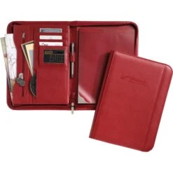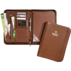 A multi-pocket organizer neatly holds cards, CD’s, DVD’s, calculator, tickets, notes, and more, making you prepared for any presentation or lecture. For added security, the custom Deluxe Padfolio features a zippered closure to secure your important documents and papers.