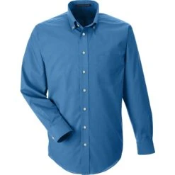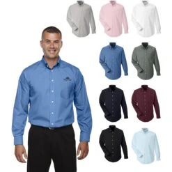 No-iron woven shirt made of 55% cotton (3.4 oz.) and 45% polyester broadcloth with stain release finish. True non-iron performance straight from the dryer. Fine yarn count shirting with pearlized buttons. Features patented pucker-free taped seams. Specially fused collar, cuffs and placket. Split back seam with bias cut back yoke. Rolled button-down collar. Adjustable “comfort collar” gives up to an inch stretch at neck. Left-chest pocket. Classic fit for professional appearance making it ideal for trade shows.