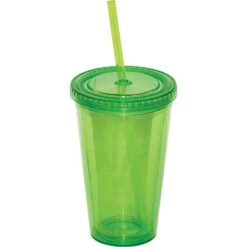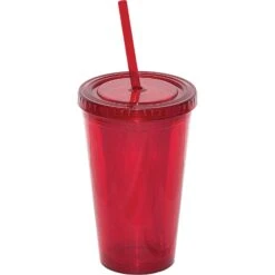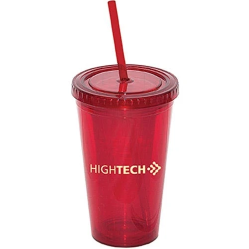 Double walled acrylic tumbler. Keep your drink cold and your hands dry. Reusable alternative to disposable cups. Twist off lid. Holds up to 500 ml. BPA free and FDA compliant. REcommended for cold beverages. Sturdy matching color stay-put drinking straw.