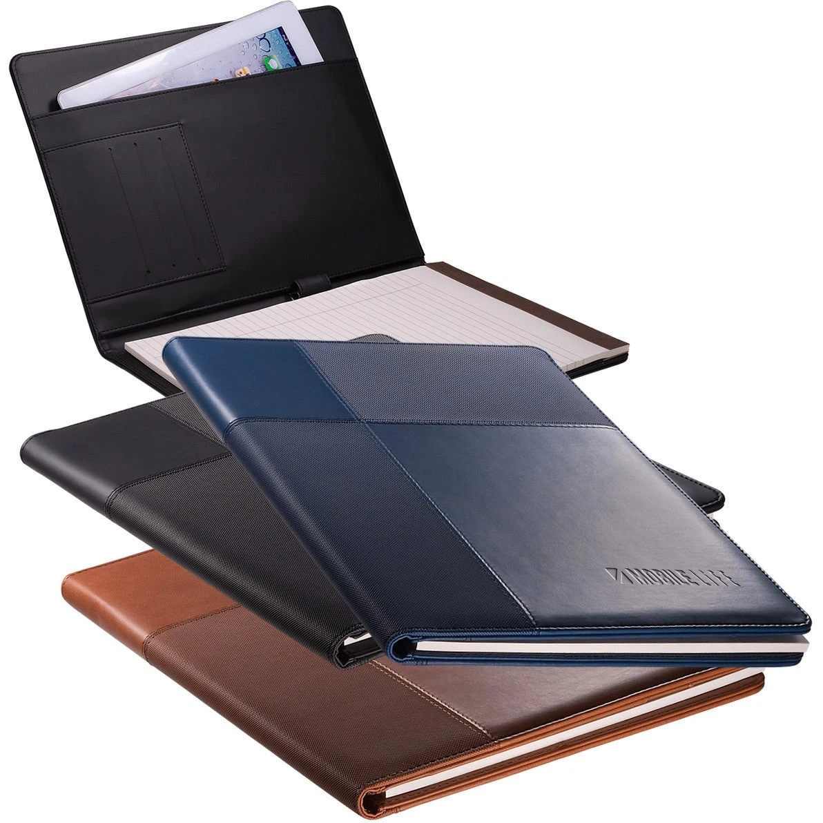 When you’re attending a special business function (maybe a board meeting or a seminar), not only will you want to bring a pad of paper to take notes on, but you’ll also want an easy way to file away any business cards that you receive from other attendees. In addition, you’ll want a folder to hold any special literature that gets handed out. Most of all, you’ll want a business accessory that maintains a professional style. Fortunately, we’ve got just the thing.