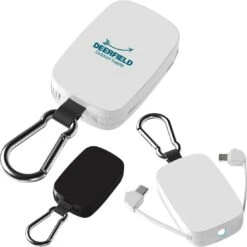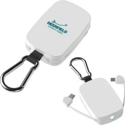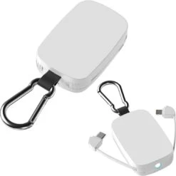 1200 mAh lithium polymer grade A non-recycled battery. Extra bright white LED flashlight. Features a USB output and micro-USB input (cord included). Output: 5 volts at 1 amp. Bright white LED light. Carabiner attachment. Requires your phone’s charging cord to charge your device. Charges most phones, MP3 players and more!