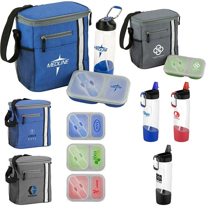 Hopefully you’re not still carrying your lunches in a paper bag. Not only is it wasteful to use a disposable bag every day, but paper bags are extremely flimsy and prone to splitting open. But when you’re upgrading how you carry your lunch, why not take the opportunity to promote your brand by having your custom logo placed on a durable lunch set?