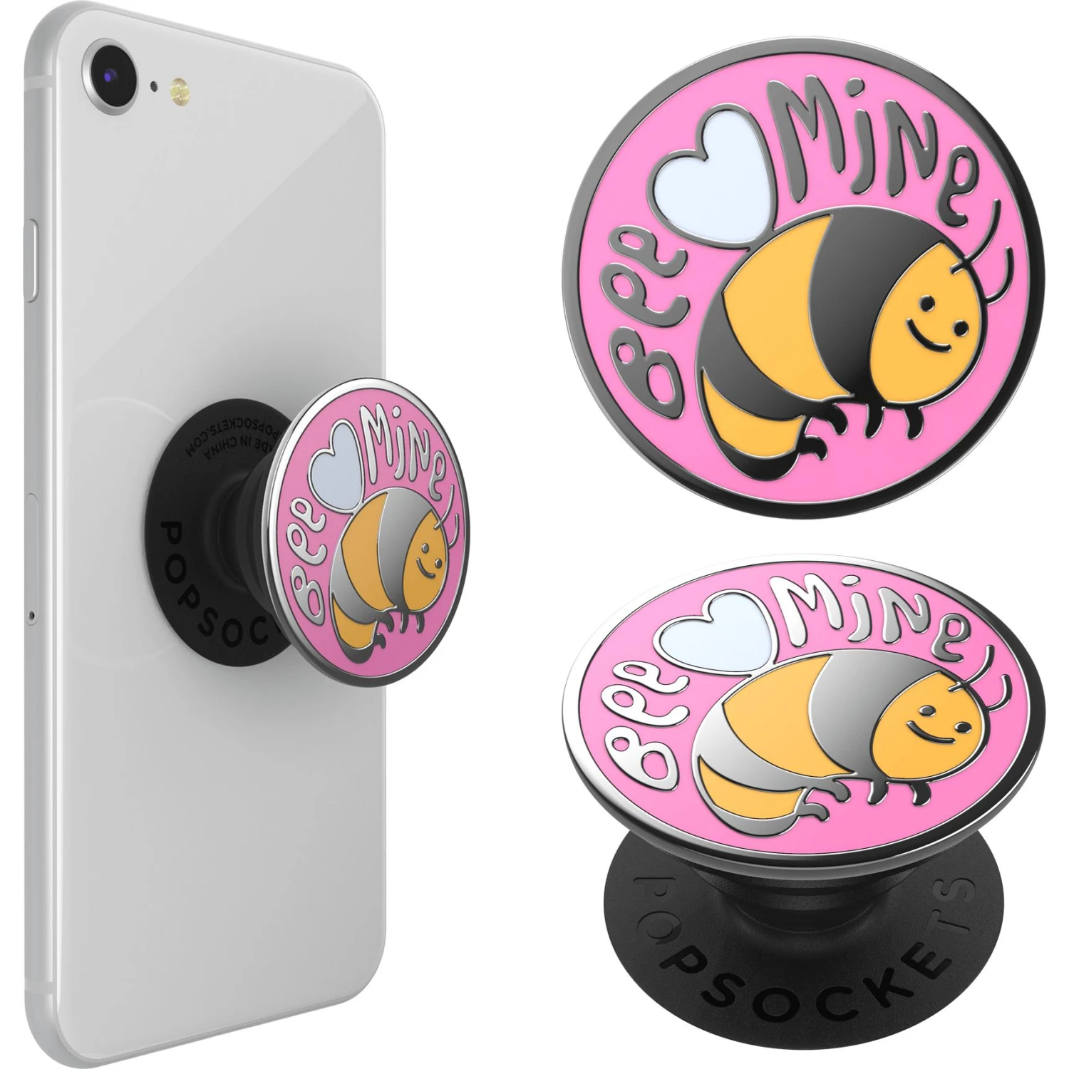 An Enamel PopGrip with a 3D hand-polished metal and enamel top. Like a classic PopGrip it sticks flat to the back of your phone with a repositionable gel. Once extended it becomes a media stand and grip. Making it easier to text with one hand, snap photos, and watch videos hands-free. Remove the top completely to use your phone’s Qi wireless charging capabilities. For best results, use in conjunction with a phone case. The PopGrip’s gel is designed to stick to most materials, but it may have issues sticking to silicone, waterproof cases and textured materials, like leather.