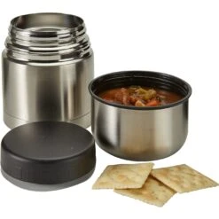 Versatile bowl holds 13.5 oz. of liquid. Double wall, vacuum insulated design. Screw-on, spill-resistant lid. Sweat-resistant. Keeps food hot or cold for hours. Hand wash recommended. Meets FDA requirements. BPA free.