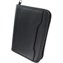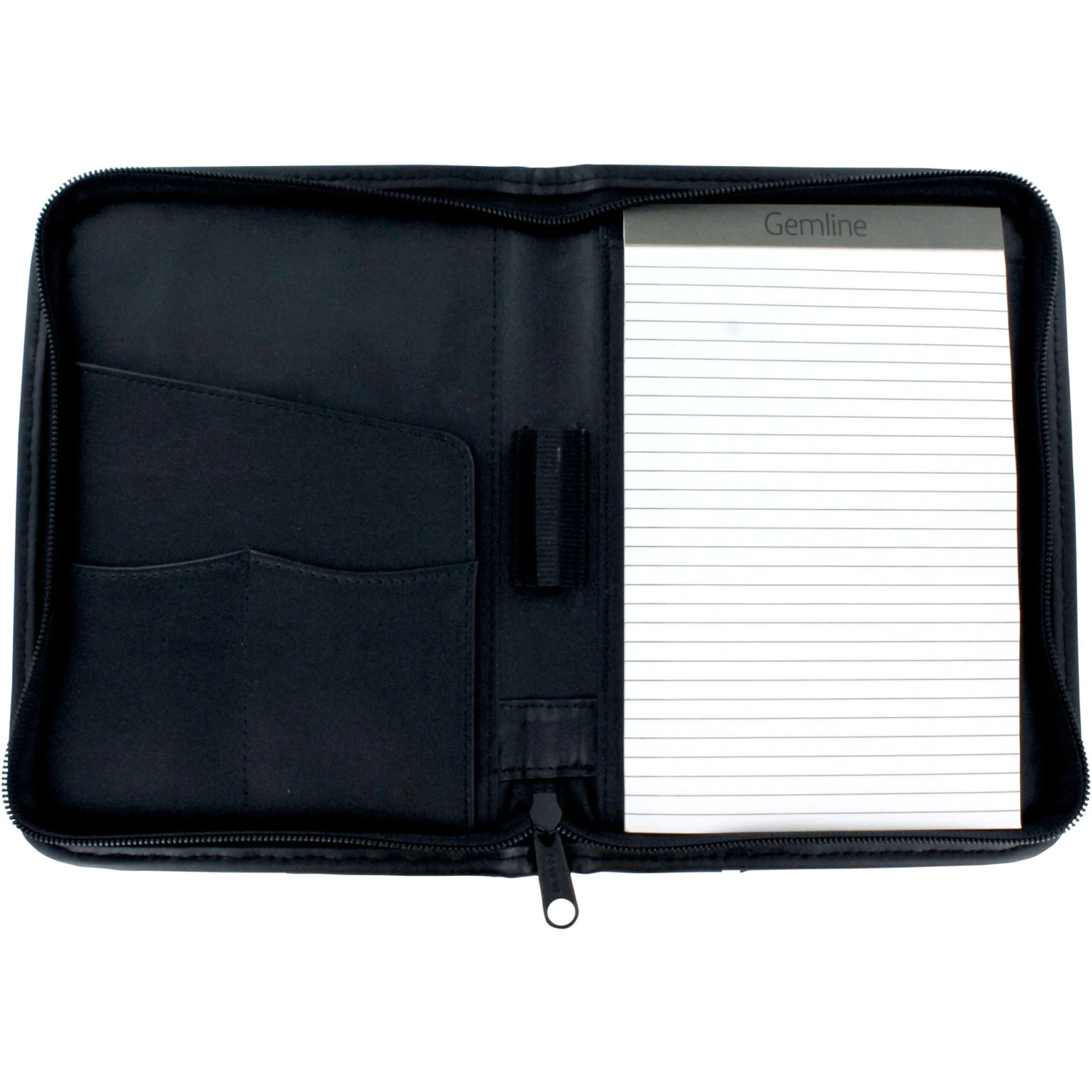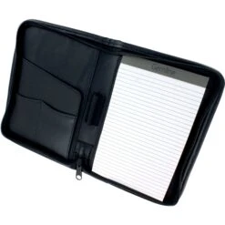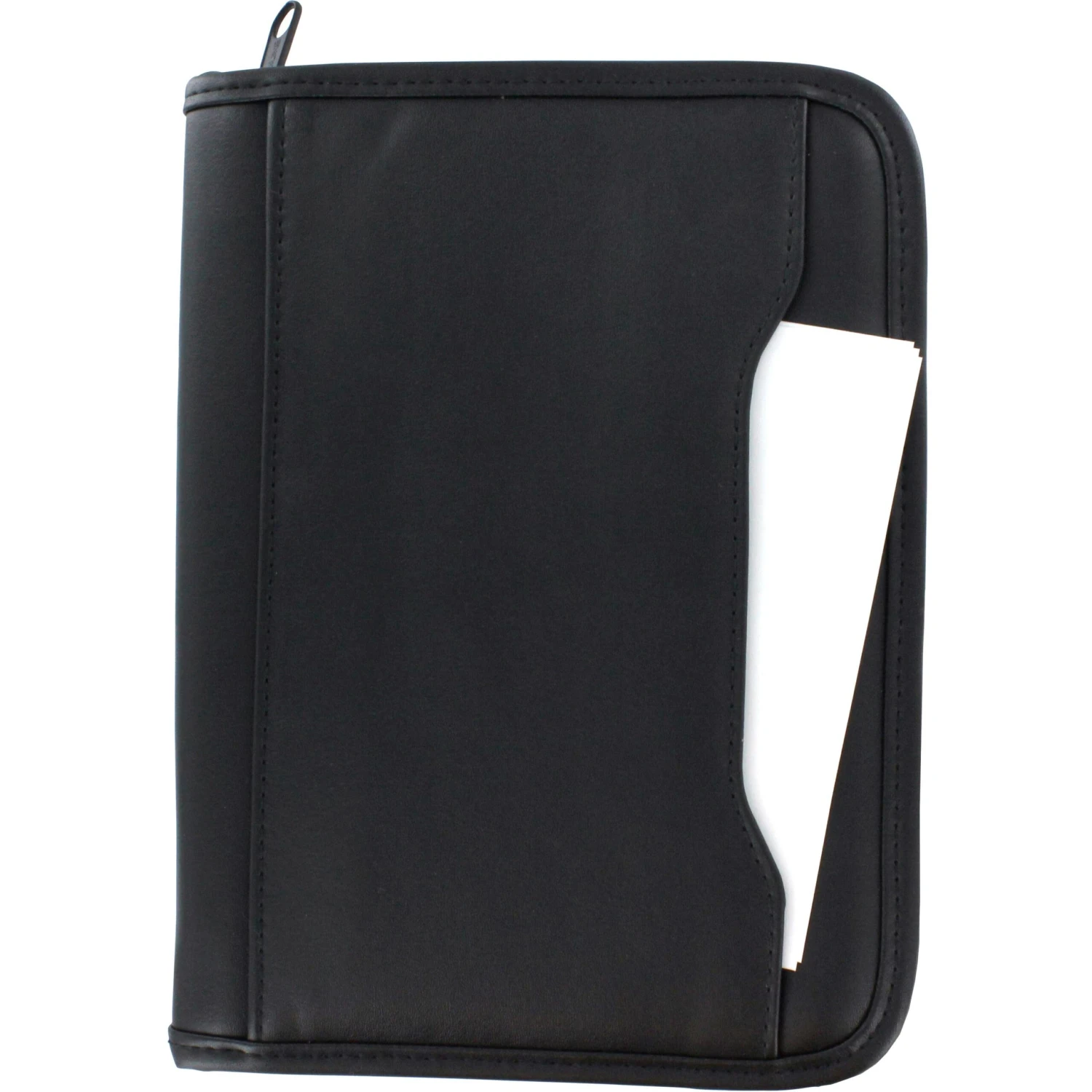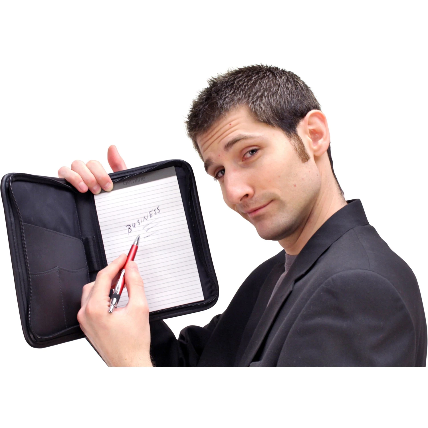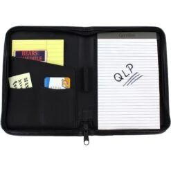 - Features interior organizer pockets, pen loop, and a 5″ x 8″ lined pad of paper