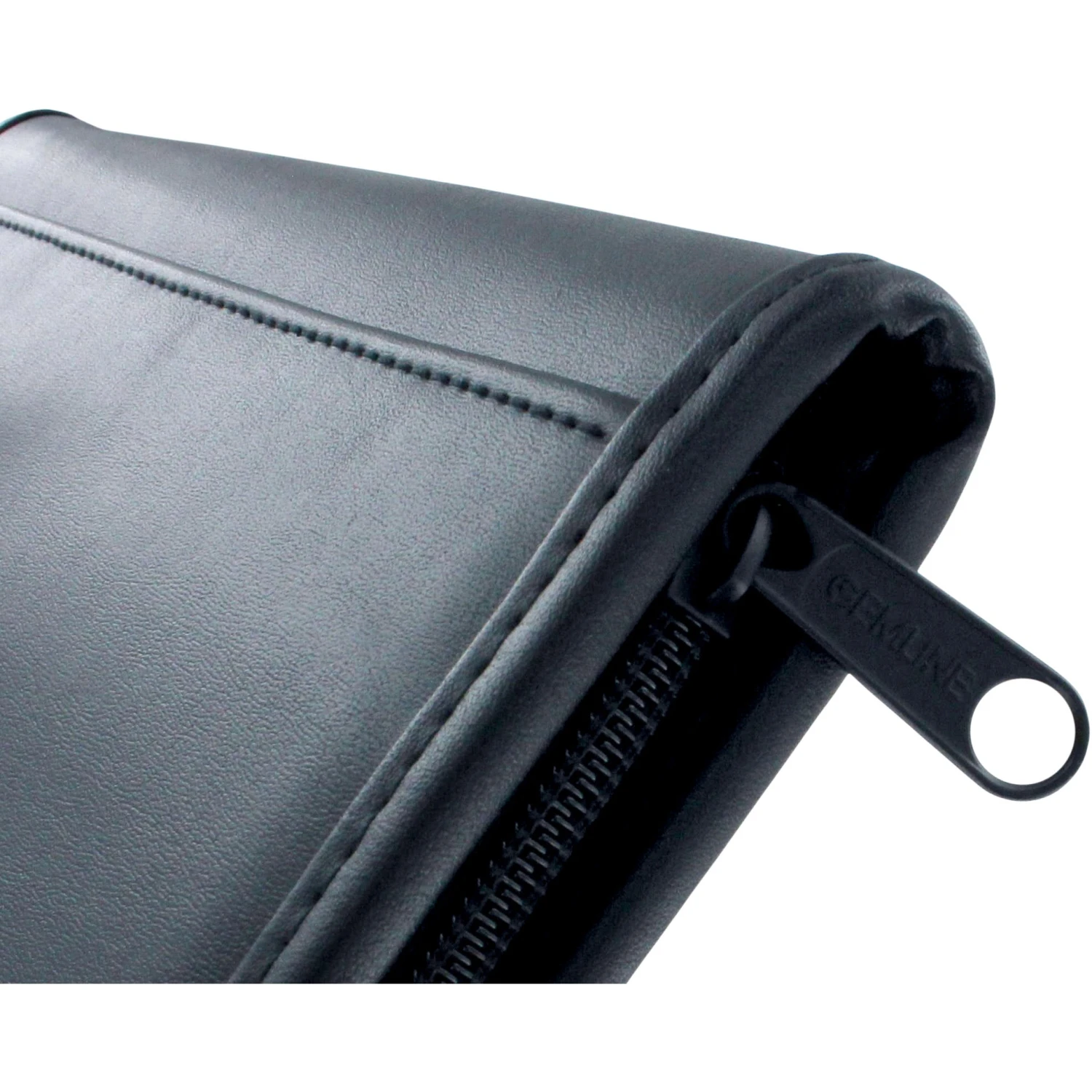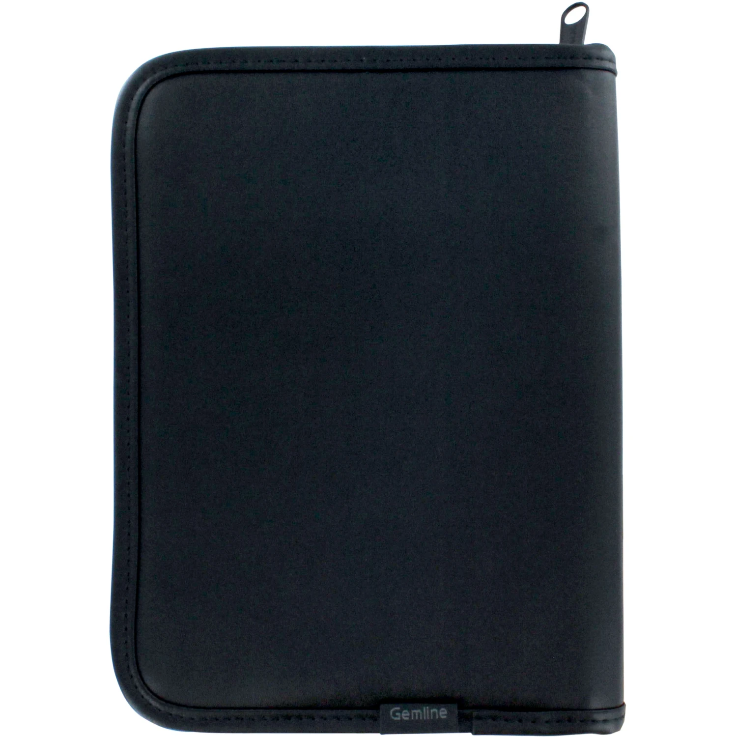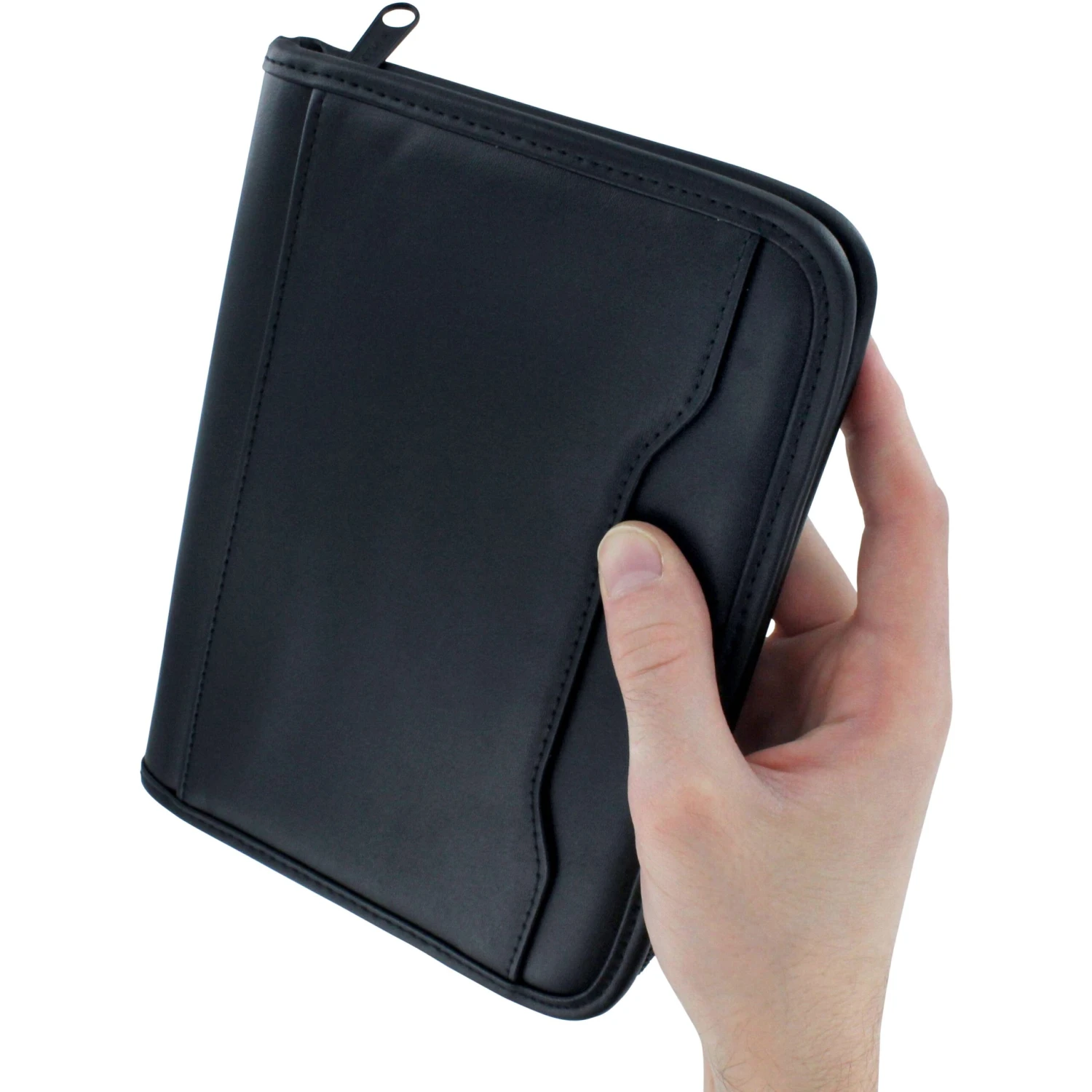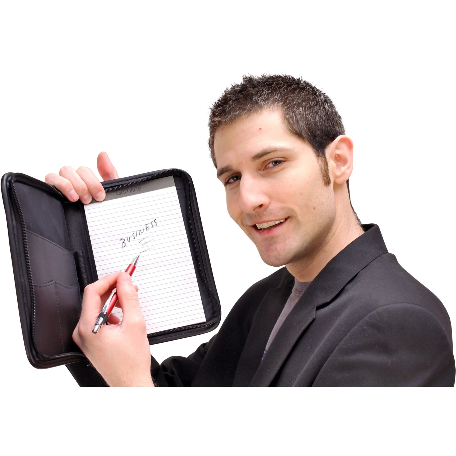 - Features interior organizer pockets, pen loop, and a 5″ x 8″ lined pad of paper
