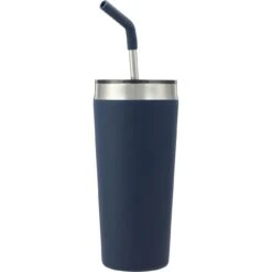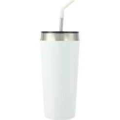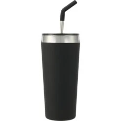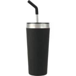 The Faye Vacuum Tumbler with Stainless Steel Straw (20 oz.) features double-wall stainless steel construction with vacuum insulation. Use it to keep your favorite beverages hot for five hours or cold for 15 hours. It comes with a food-grade stainless steel straw that has a comfortable removable silicone tip for safe sipping. The Faye also includes a spill-proof press-on lid, which features a slide closure. Reusable and dishwasher-safe, the included straw is an eco-friendly, environmentally responsible, and sustainable alternative to disposable plastic straws.