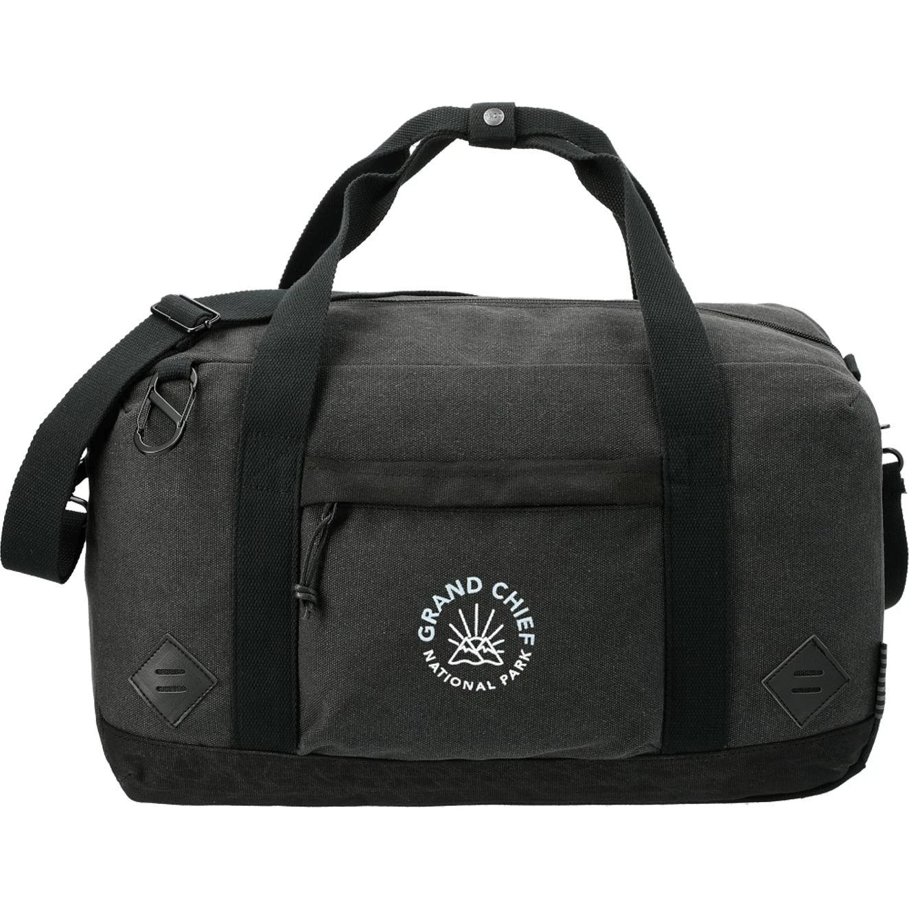 The Field and Co. Woodland Duffel is made from sturdy cotton canvas and features custom wood grain lining. This specialty duffel bag includes a spacious zippered main compartment, zippered front accessory pocket, and a removable carabiner to hold keys or favorite camp mug. This custom duffel includes two premium diamond lash tabs to attach additional carabiners. The Field and Co. Woodland Duffel features a removable, adjustable shoulder strap and webbing grab handles.