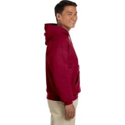 50% cotton, 50% polyester. All Heather Sport colors are 60% cotton, 40% polyester. Pill-resistant air jet yarn. Double-needle stitching throughout. Double-lined hood. Pouch pocket. Matching drawcord. 1×1 ribbed cuffs and waistband with spandex. Safety Orange color is compliant with ANSI – ISEA 107 High Visibility Standards.