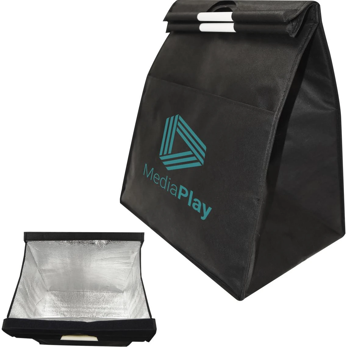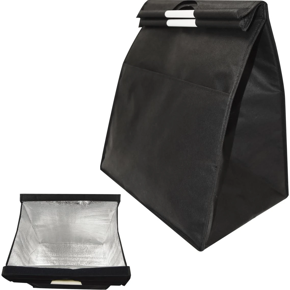 Made of 80 gram non-woven, coated water-resistant polypropylene. Foil laminated PE foam insulation. Sturdy handles for extra durability. Hook and loop closure. 11″ gusset. Spot clean and air dry.