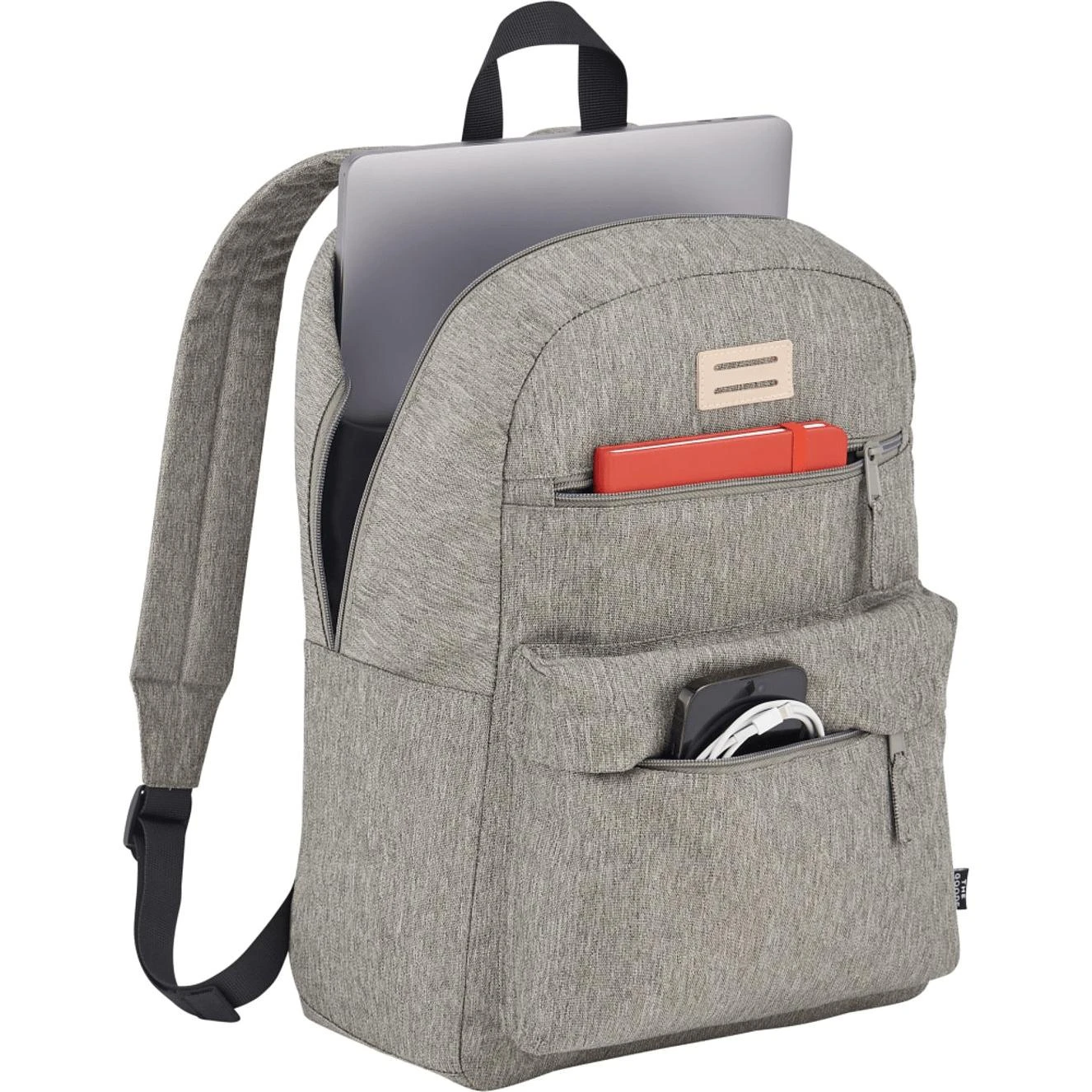 The Goods Recycled Laptop Backpack includes a pocket for all your needs. Made from RPET, this backpack features two zippered front pocket and a side water bottle pocket. The zippered main compartment includes a 15″ laptop sleeve. The RPET lash tab keeps this backpack on trend. This backpack has padded, adjustable shoulder straps, a top grab handle, and a trolley sleeve. Through a partnership with 1% For The Planet, one percent of sales of all EcoSmart products are donated to environmental nonprofits.