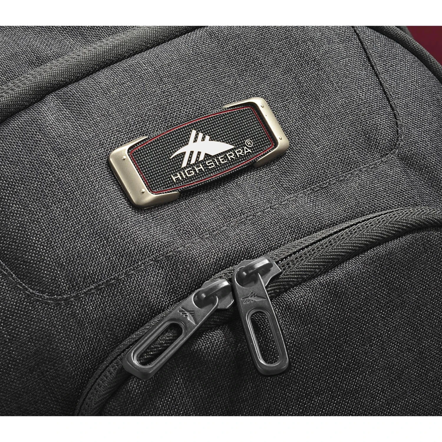 The High Sierra 17″ Computer UBT Deluxe Backpack features a dedicated quilted 17″ laptop compartment to keep your computer protected while traveling. Four large compartments make up this backpack with a zippered main compartment that has a dedicated tablet sleeve, as well as zippered mesh organizational pockets and a second compartment that offers additional zippered pockets, as well as easy access storage of your tech accessories or essentials. Front zippered compartment offers deluxe organization pocket with an easy release key fob. Two large side zippered pockets and mesh water bottle pocket. Airflow 1/4 mesh padded back panel with trolley pass-through. Padded and adjustable shoulder straps and chest strap. Included lifetime warranty.