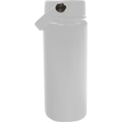 Stainless steel outer and inner. Double wall construction for insulation of hot or cold liquids. Screw on, spill-resistant lid. Easy carry handle. Wide mouth opening. Meets FDA requirements. BPA free. Hand wash recommended.