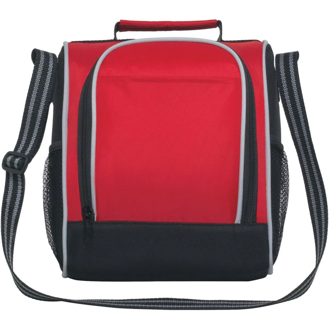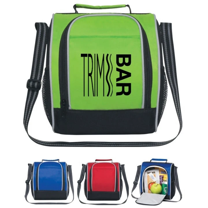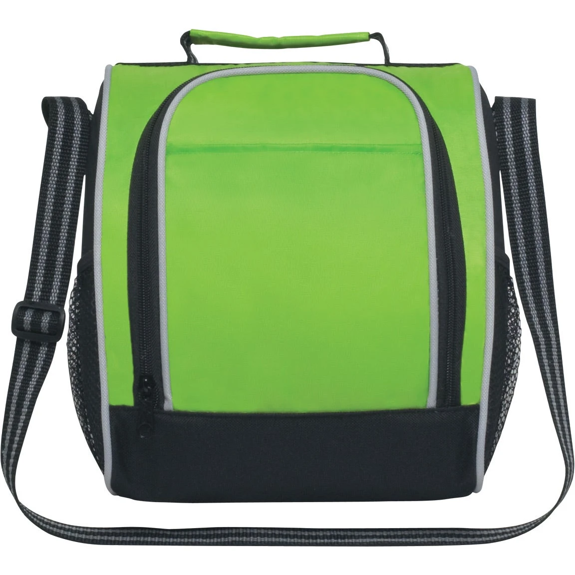 These stylish lunch bags have an adjustable shoulder strap and a padded web handle for simple, comfortable carrying. Each of these custom lunch bags has a large front zippered access with pocket. Its two side mesh pockets are handy for silverware or napkins. They ‘re available in a variety of attention-grabbing colors to accent your bold logo.