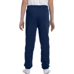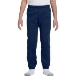 Jerzees Youth NuBlend Fleece Sweatpants made of 8 oz., 50% cotton, 50% polyester NuBlend pre-shrunk, pill-resistant fleece. High stitch density for a smooth printing canvas. Double needle covered elastic waistband. Elastic bottom leg openings. CPSIA compliant: all Jerzees youth products and packaging comply with the tracking label requirements of the Consumer Product Safety Improvement Act.