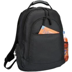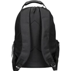 Inside these customized laptop bags there is a zippered laptop compartment that has a built-in fully padded sleeve to protect their laptop and a padded back for your recipient’s comfort. The mesh pocket on the side is perfect for keeping a bottle of water secure while they’re traveling with this promotional laptop backpack.