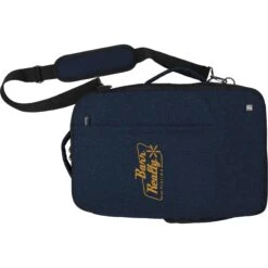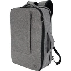 This dual-function briefcase backpack has a stylish modern design. Made of 600D polyester, it features a padded laptop sleeve that fits most laptops up to 15″. With interior organizers and multiple ways of being carried, this item is ideal for travel.