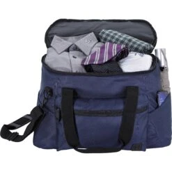 Add some style to your next vacation or gym session. This premium duffel has plenty of room for your clothes, gear, and other essentials thanks to the large main zippered compartment. The front zippered pocket and side pockets provide additional storage, while the interior mesh zippered pocket helps you to keep smaller items organized. The back trolley strap allows for easy transport and the bottom compression straps can be adjusted to hold your exercise mat in place.