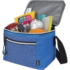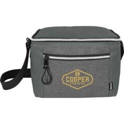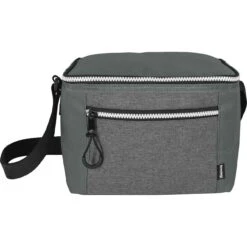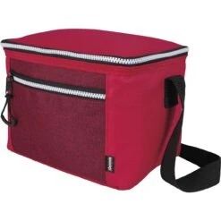 The distinctive styling of this cooler will be the envy of the lunch crowd. On your day off, use it to keep a six-pack cool while you enjoy your favorite outdoor pastime. Main zippered compartment. Front zippered pocket. Adjustable shoulder strap. Heat-sealed PEVA liner. Keeps cool with ice packs.