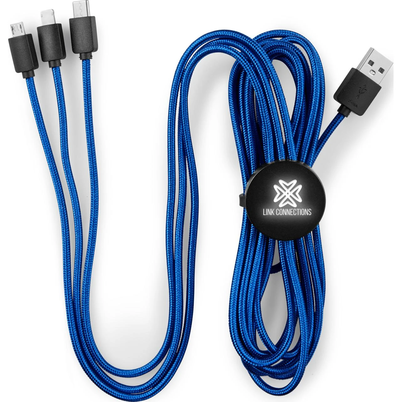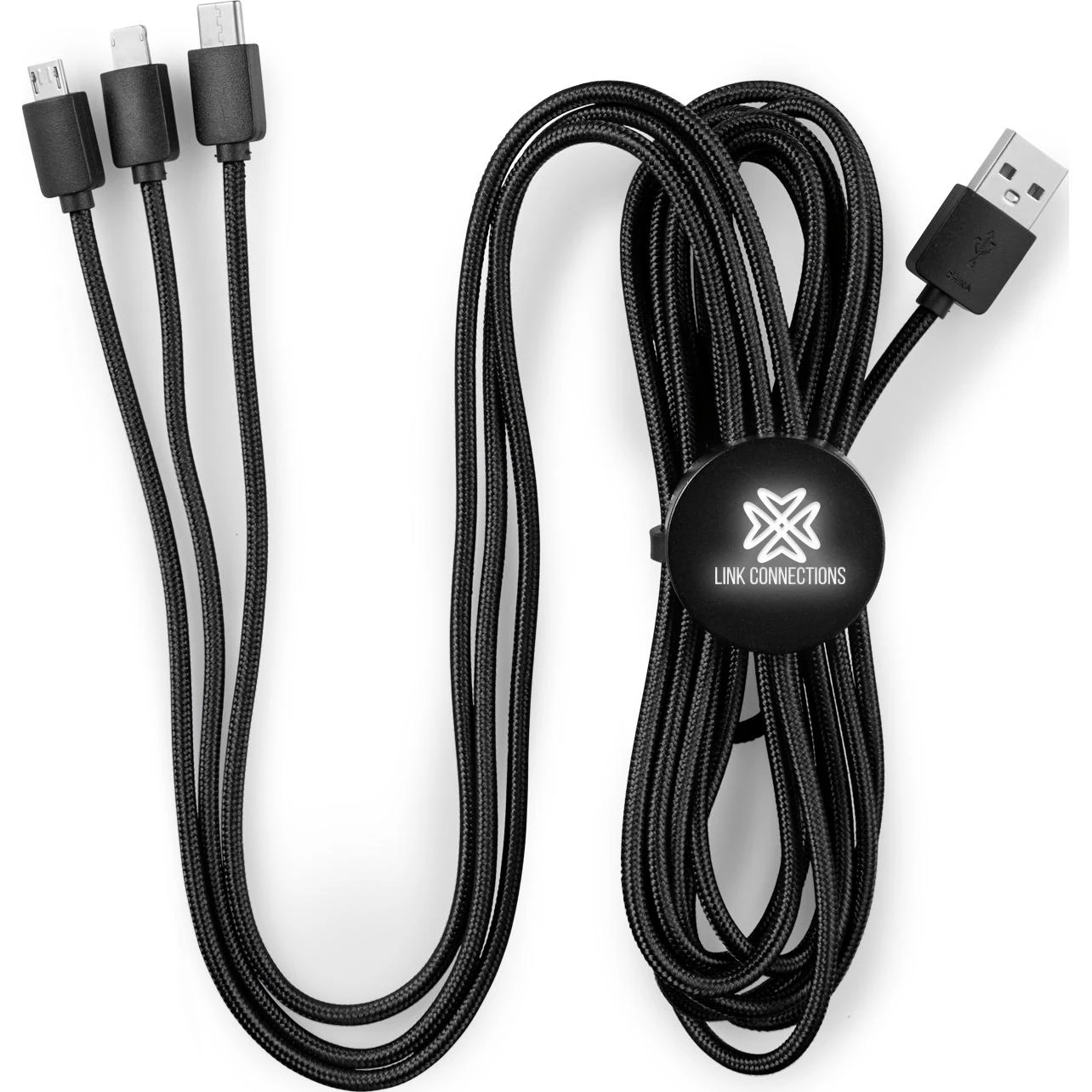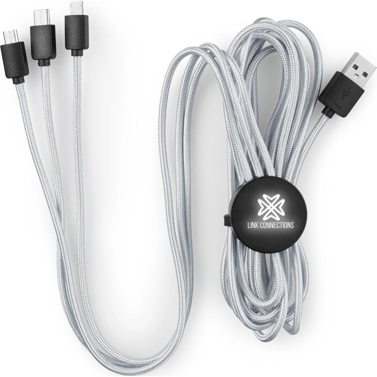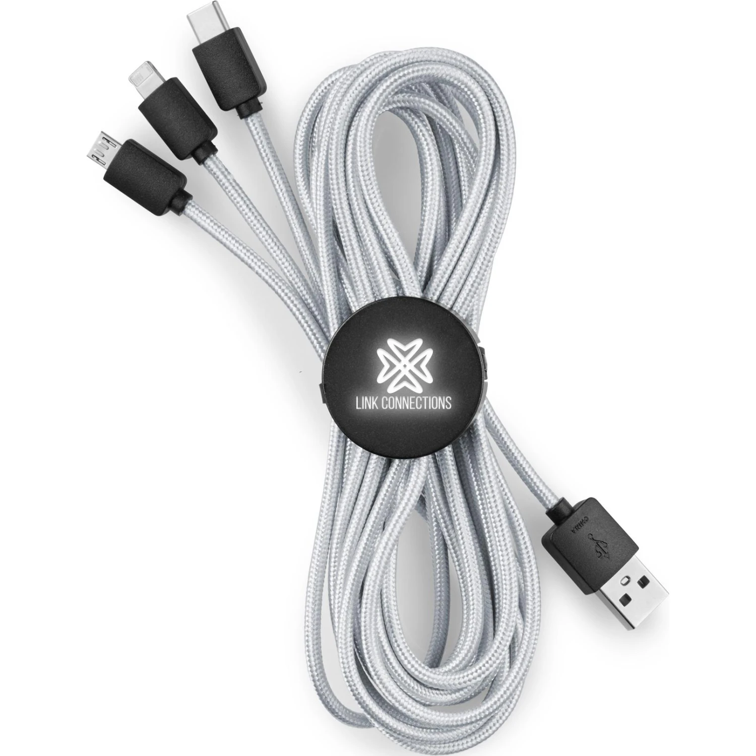 The Light-Up-Your-Logo 2-in-1 Charging Cable from Quality Logo Products® features: