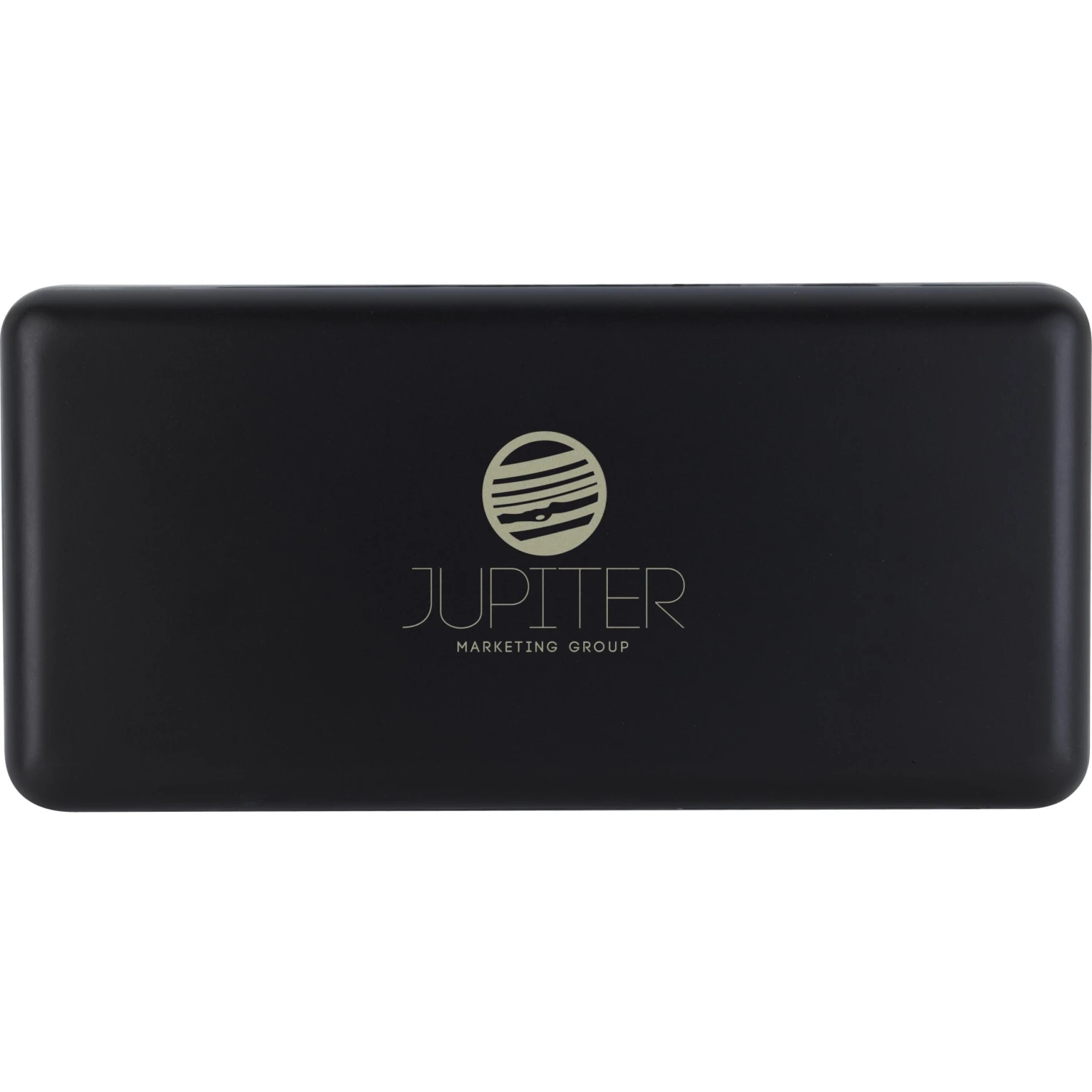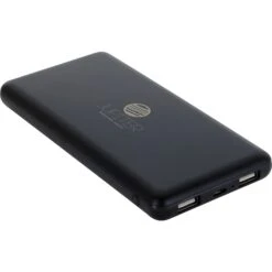This power bank can easily charge even the biggest phone battery multiple times. The light up logo, laser imprint is sure to impress your customers and show off your brand. Perfect for business travelers. Small enough to fit in your pocket, briefcase, backpack, or purse. 10,000 mAh rechargeable lithium ion battery. USB port delivers 1.0A output. Flat shape to easily fit into your pocket. Lights up when charging. Includes charging cable and instructions.
