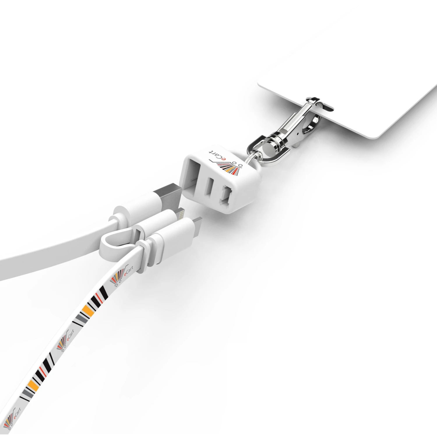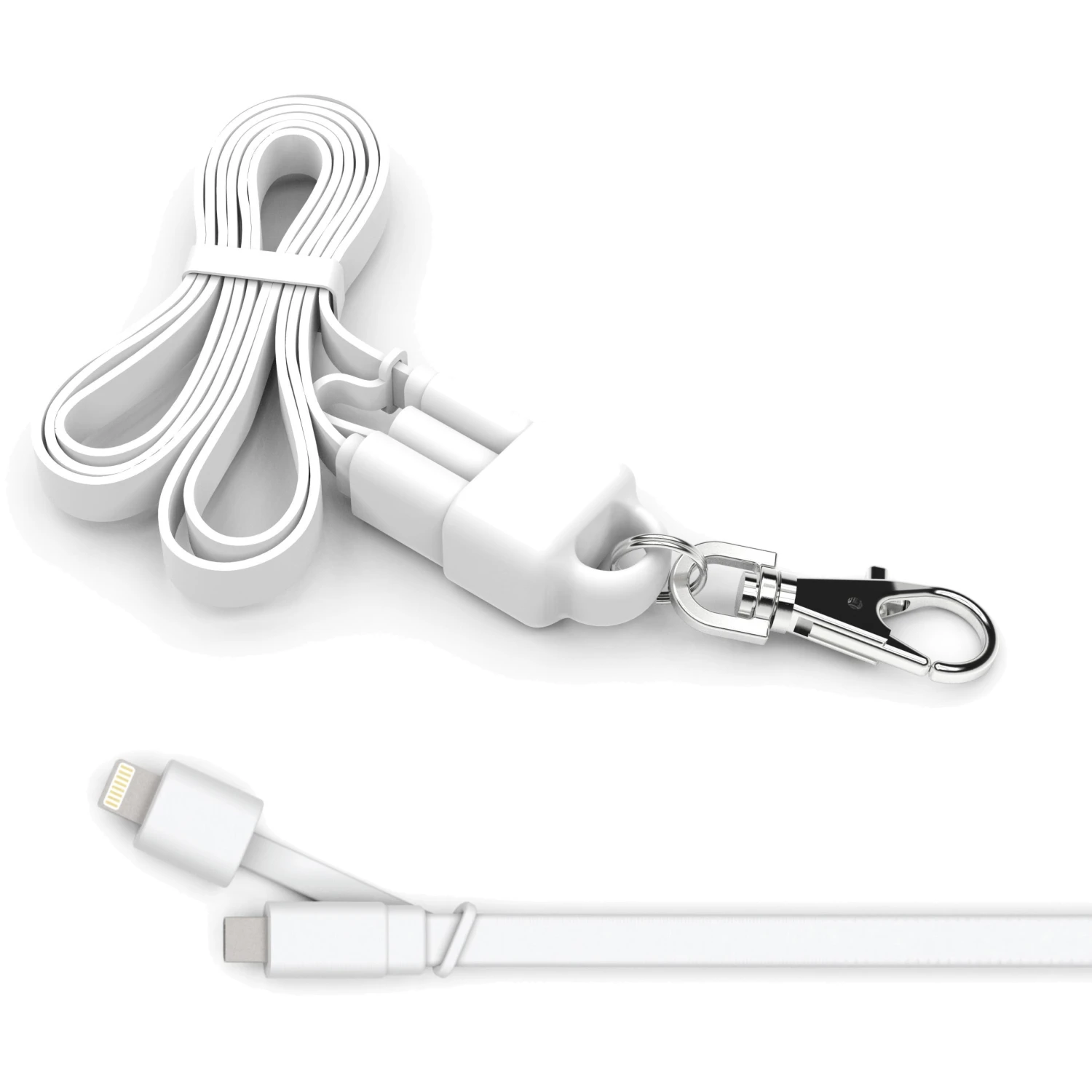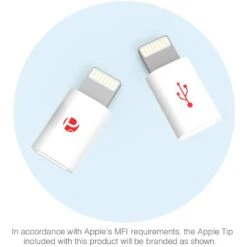 Flexible flat USB to Micro USB cable. Simply plug the cable into a powered USB port and then into your device or smartphone. Apple MFi certified lightning adapter with silicone sleeve tether.