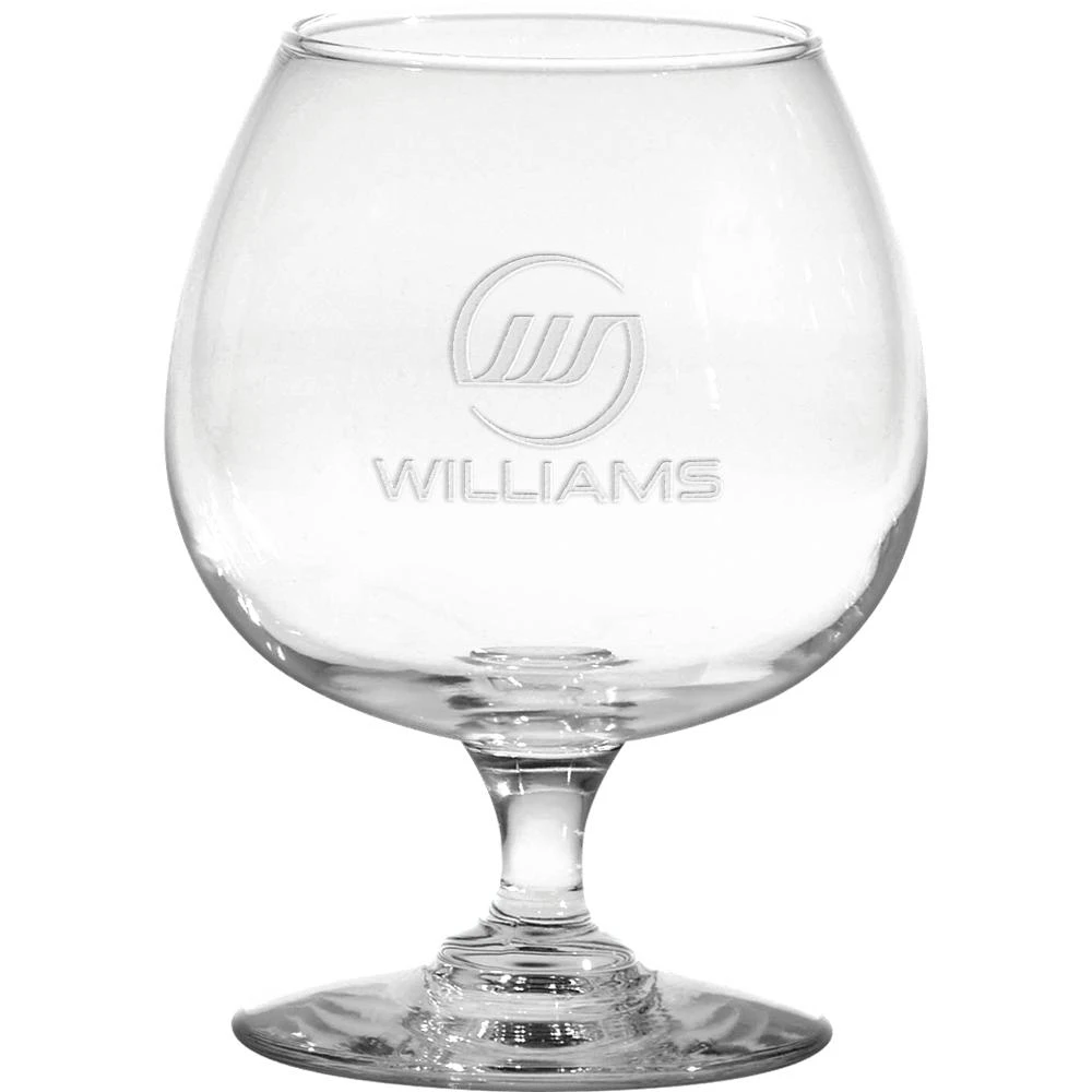 The narrow top traps the aroma inside the glass. The rounded bottom allows the glass to be cupped in the hand, thus warming the contents. Made in the USA.