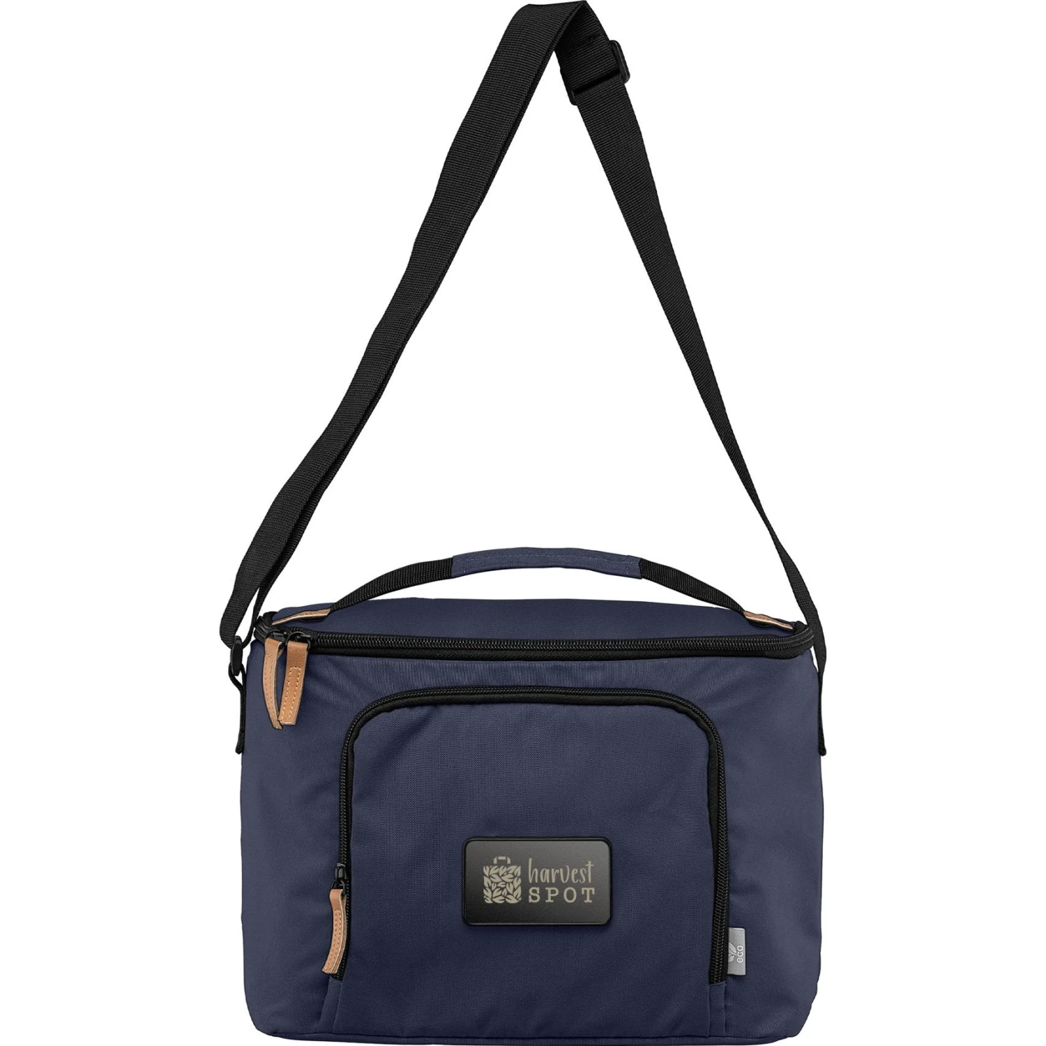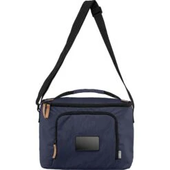 The coolest of them all. The Navigator RPET Cooler Bag has a polyester PEVA lining that keeps food fresh longer. Enjoy versatile storage with our front zipper pocket and main compartment. Modern hues and tan accents on the zipper pulls create an excellent base for brand messages, company logos, and more. Carry up to a 14-can capacity with our adjustable shoulder strap. Customize with your 1-color silkscreen logo.