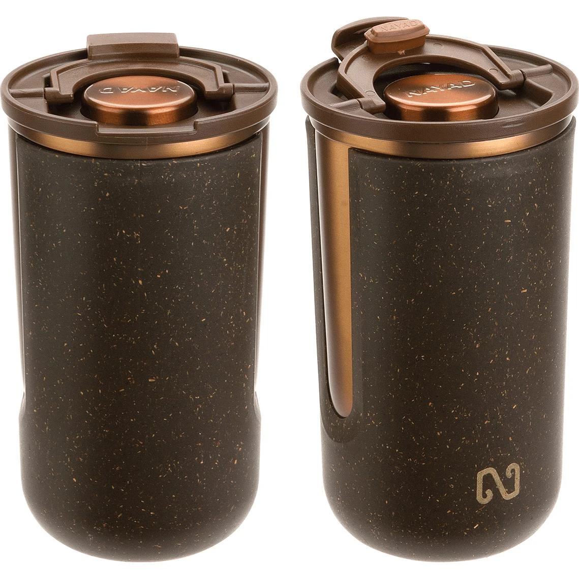 Make a sustainable choice with Nayad’s coffee ground eco-friendly line! Outer, removable sleeve is made of a new material of recycled coffee grounds and recycled polypropylene. Inner tumbler is made of 18/8 rust-free stainless steel construction. Double wall insulated. Copper-lined to keep beverage hot for up to 10 hours and cold for up to 20 hours. Wide-mouth lid is 100% BPA-free ABS plastic with silicone sipping cap. Condensation-free surface with compact size that is designed to use with most standard single serve coffee makers such as Keurig. Hand wash only. FDA certified.