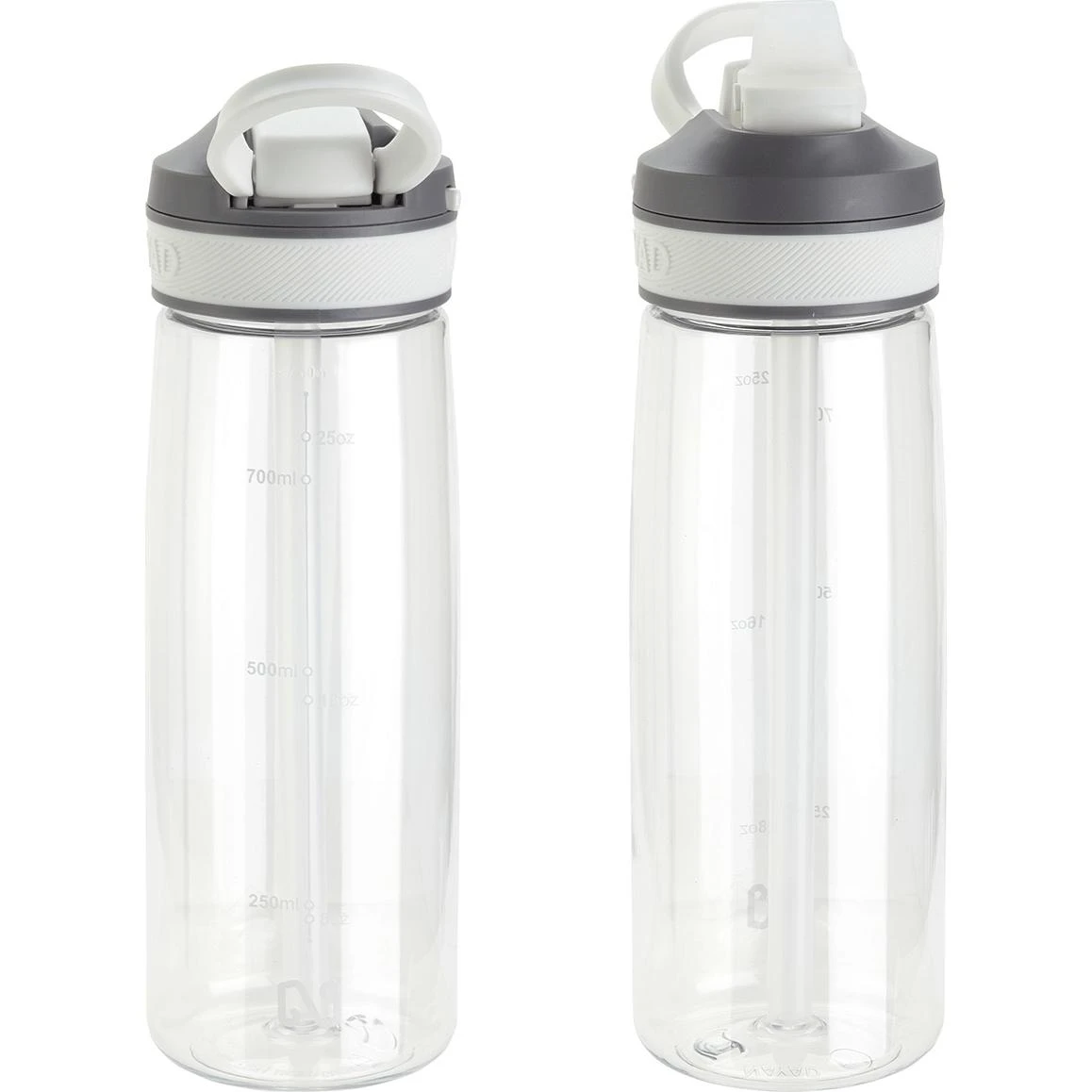 Lightweight Tritan plastic construction with glossy finish. Measurements on side in both ounces and milliliters. Wide-mouth straw lid is 100% BPA free with food grade silicone flip-top spout. The lid has built-in lock switch to flip-top spout up by pushing handle down. Push flip-top spout down to close and switch lock to make leak-proof. ABS plastic straw is removable for easy cleaning. Hand wash only. FDA certified.