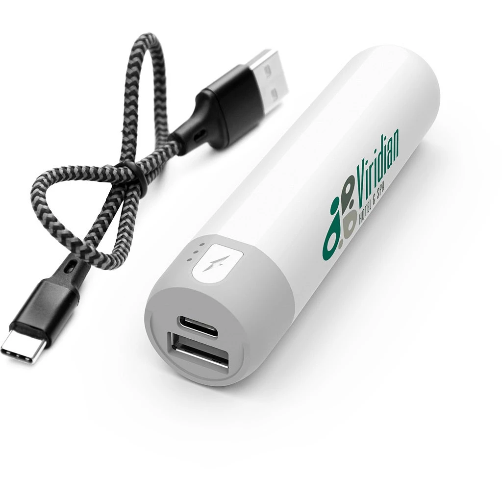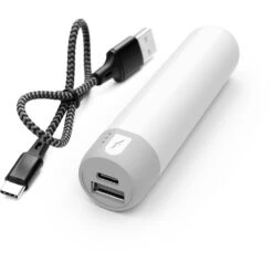 2,200 mAh lithium polymer grade a non-recycled battery. Compact design. Recharges via the supplied braided type C to USB cable. Features a standard USB port and type C port (in/out). LED lights indicate battery status. Apple and lightning are trademarks of Apple Inc., registered in the U.S. and other countries.