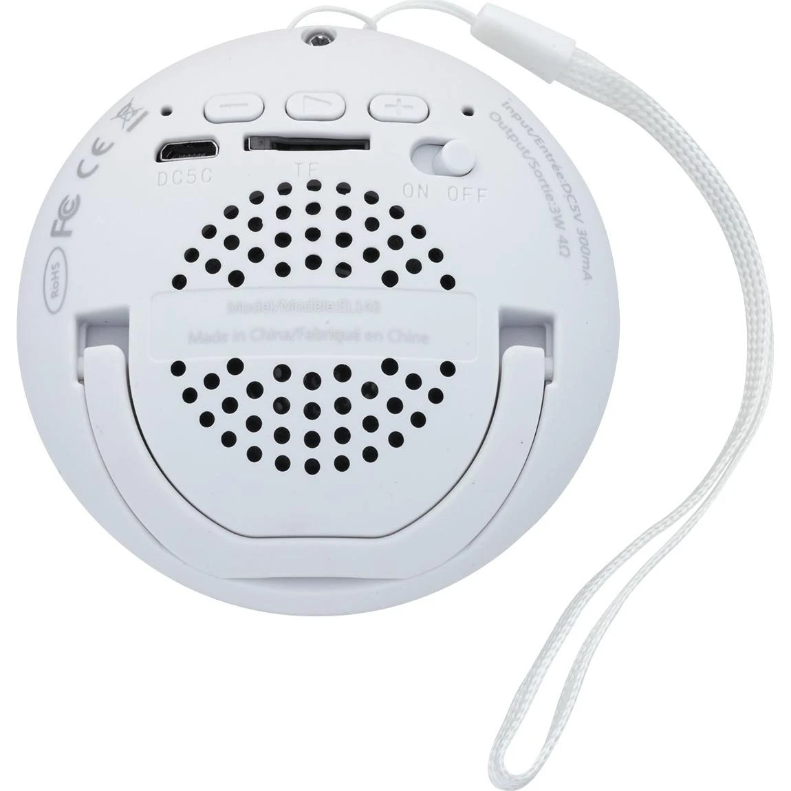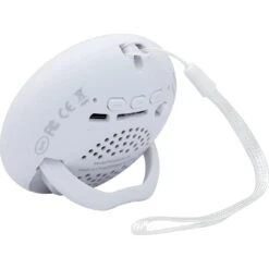 3-watt Bluetooth speaker. Built-in retractable kickstand. Rubber-coated exterior. Removable wrist strap included for convenient on-the-go transport. Operating range 33ft/10m. Up to 2 hours playtime. Approx 1-2 hours charge time. TF card holder. Connect to your phone or other Bluetooth enabled audio device to listen to music practically anywhere.