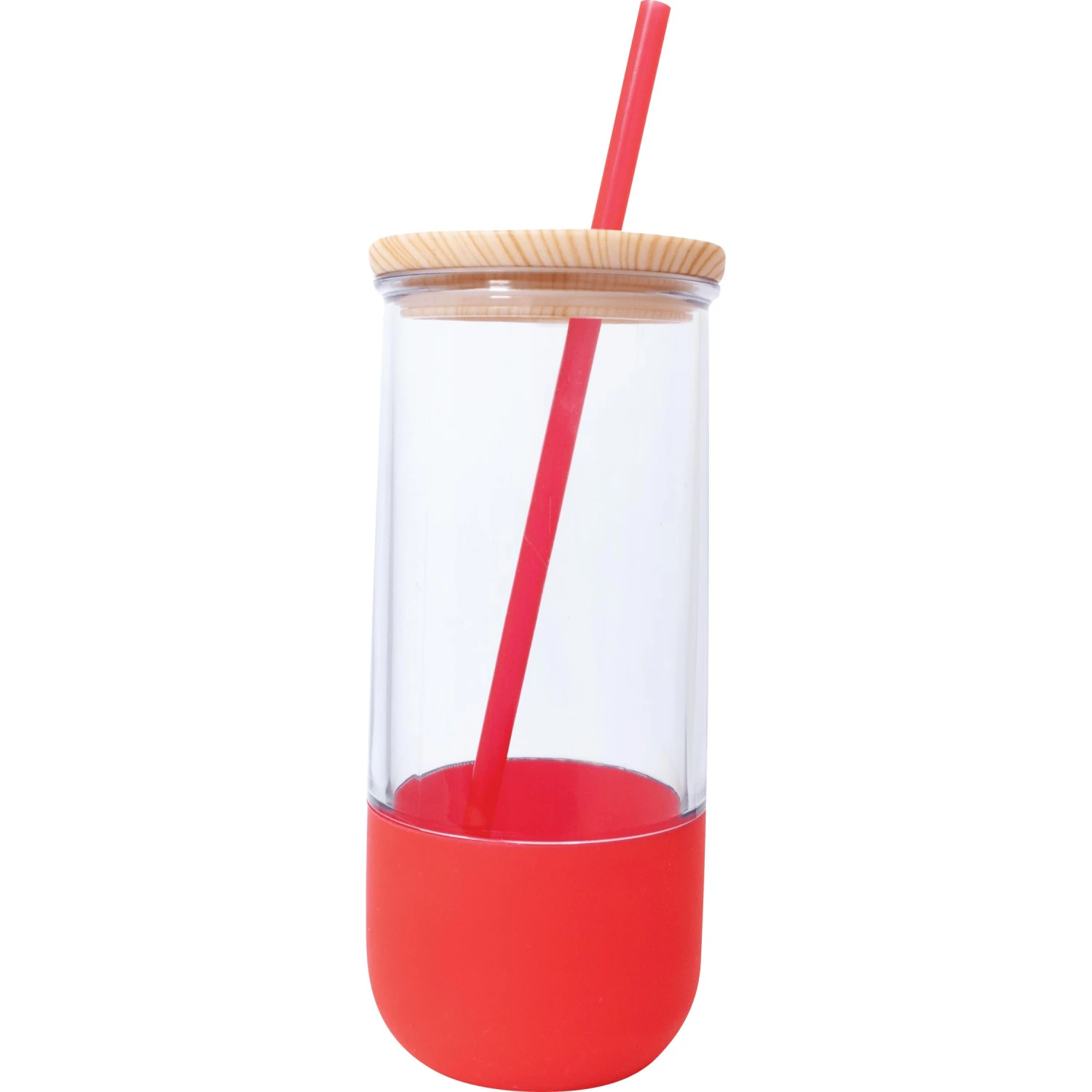 AS body. Coloured silicone bottom. Matching colored stay-put PP straw. ABS faux-bamboo push-on lid. Holds up to 600 ml. For cold beverages only. Perfect for your vacation-friendly beverages. BPA free and FDA compliant.