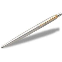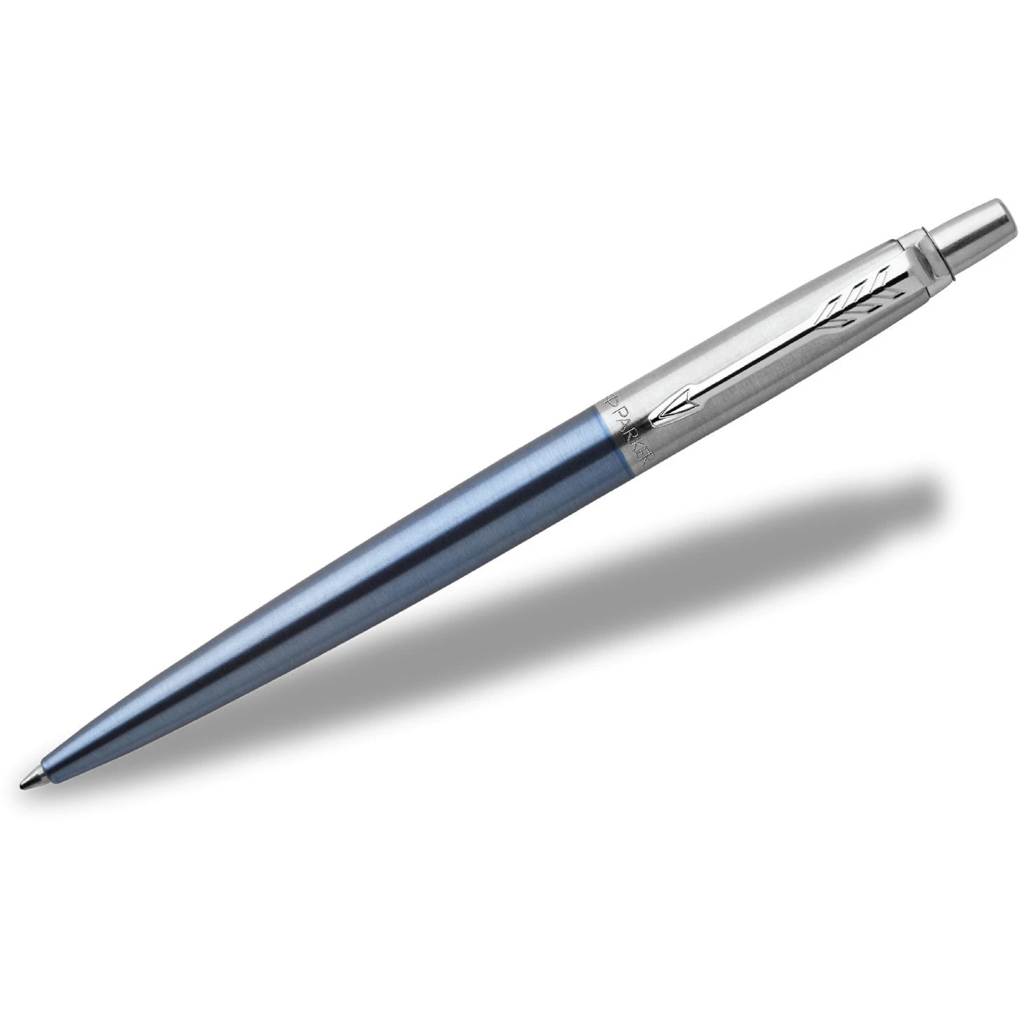 Streamlined style with clean lines for a fresh take on the iconic Parker Jotter design. Stainless steel barrel accented by high-shine trims and an arrowhead clip. Signature retractable design opens and closes with a satisfying click. Fitted with a Quickflow ballpoint refill for optimal ink flow and a smooth writing experience; blue ink; medium tip; also accepts Parker gel refills. Packaged in a distinctive Parker gift box.