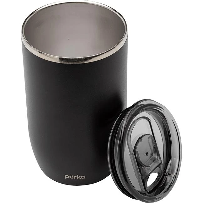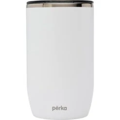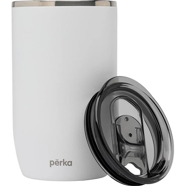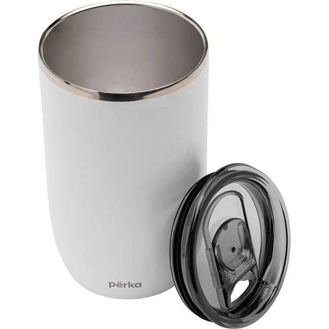 Perka Ransom Tumbler has a modern and sleek design with an elegantly slim polished top ring and smoky translucent lid. Perfect for home, office or your morning commute, this tumbler holds 13 oz. of your favorite beverage, and both the inner and outer walls are made from 18/8 grade stainless steel. Its double wall vacuum insulated construction and the copper lining keep your hot drink hot for 12 hours and cold drink cold for 24 hours. It also features a translucent push-in lid with a spill-proof slider closure to keep your drink safe and clean and its exterior powder coat finish is durable and sweat proof. The Ransom fits in most car cup holders and standard coffee machines and is BPA Free and FDA Compliant.