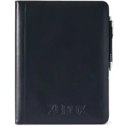 When you flip open these promotional padfolios, you’ll find a clear ID pocket or business card holder, depending on your needs. There is an 8.5″ x 11″ paper pad included in these custom padfolios so you won’t have to factor in purchasing those before your event.