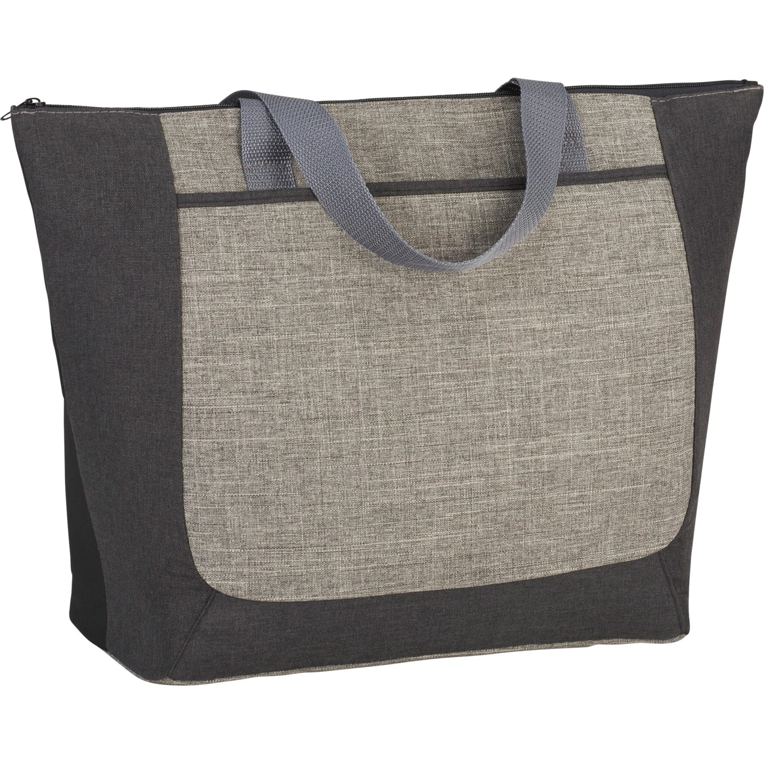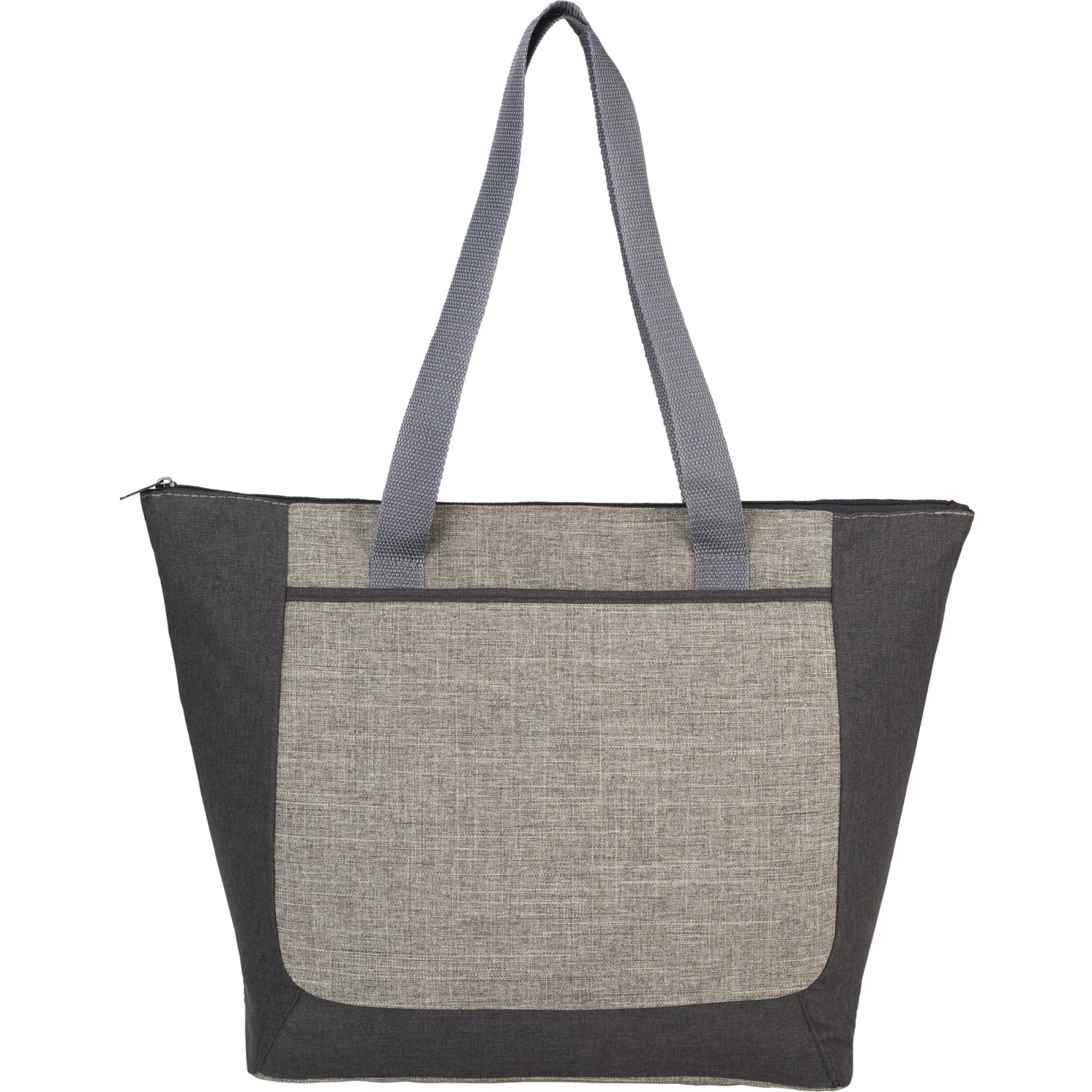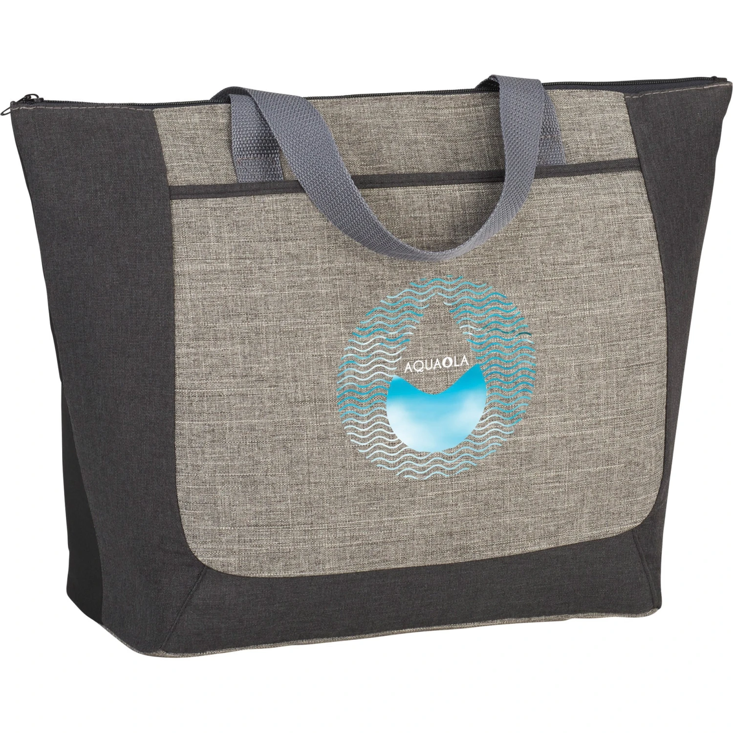 The Reclaim Two-Tone Recycled Zippered Tote Bag from Quality Logo Products® features:
