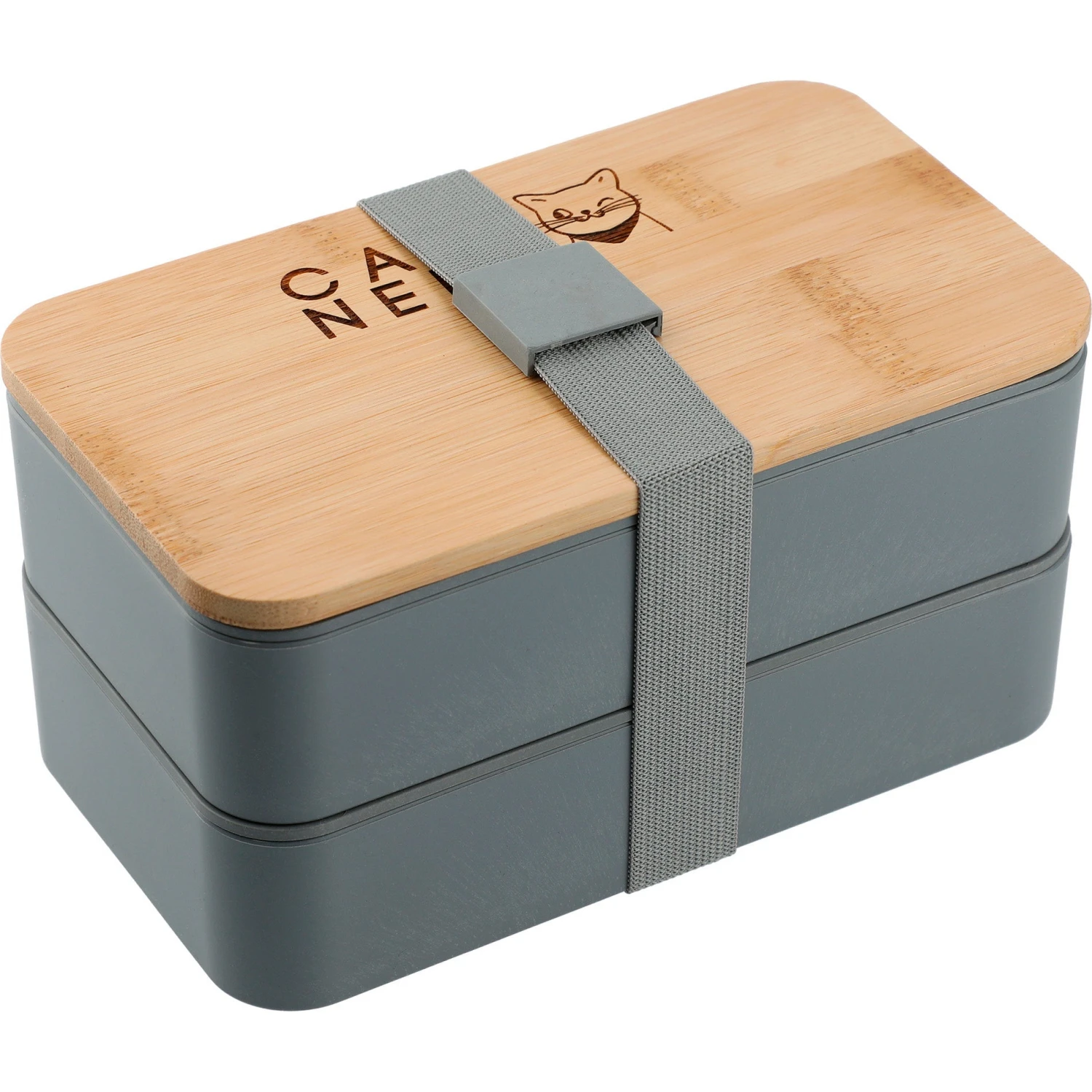 This on trend bento box has two food storage containers that feature built in utensil storage between the layers. It is made of 55% bamboo fiber and 45% plastic. The cutting board lid is 100% bamboo. The use of bamboo helps to cut down on plastic usage which benefits the environment.